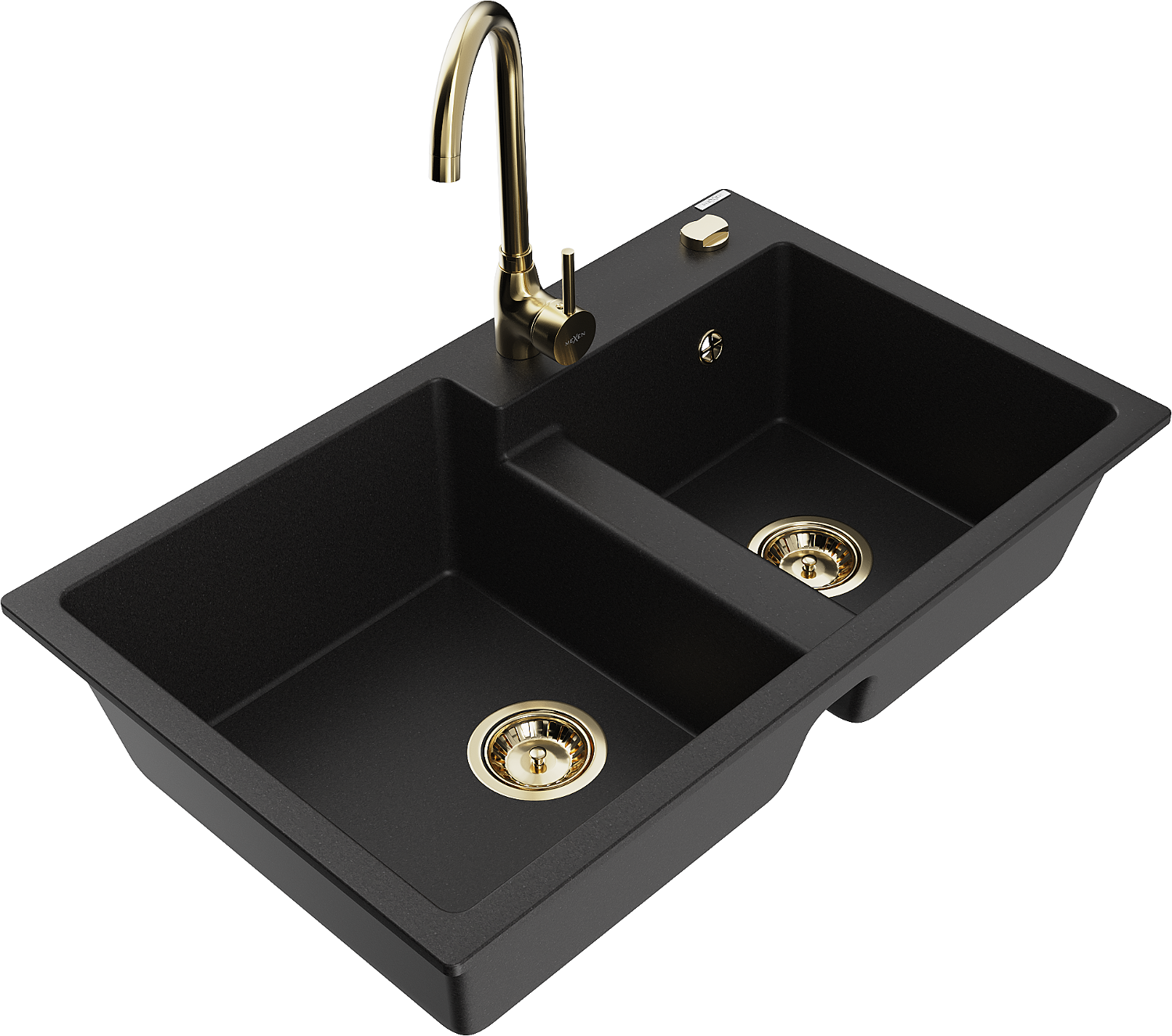 Mexen Tomas chiuvetă din granit cu 2 compartimente și baterie de bucătărie Telma, negru - 6516-77-670200-50