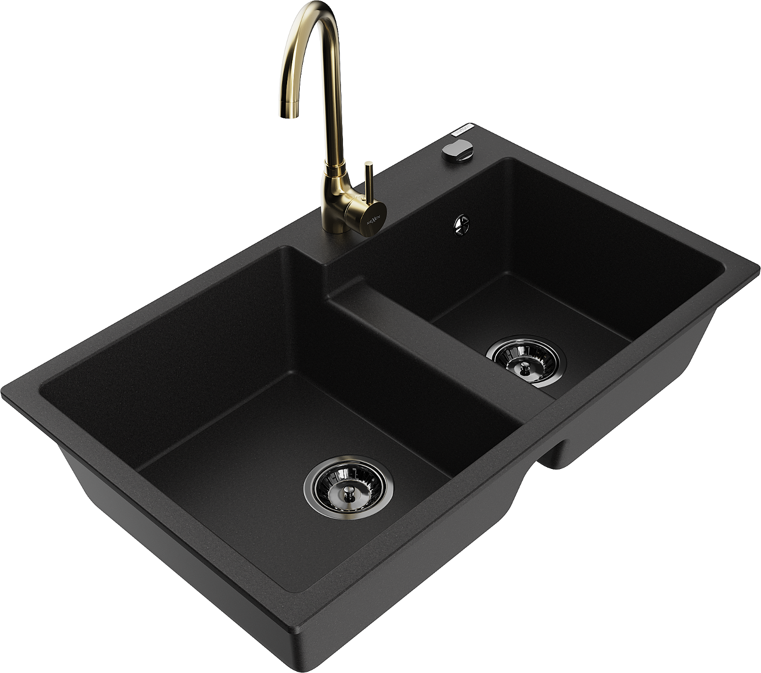 Mexen Tomas chiuvetă din granit cu 2 compartimente și baterie de bucătărie Telma, negru - 6516-77-670200-50-B