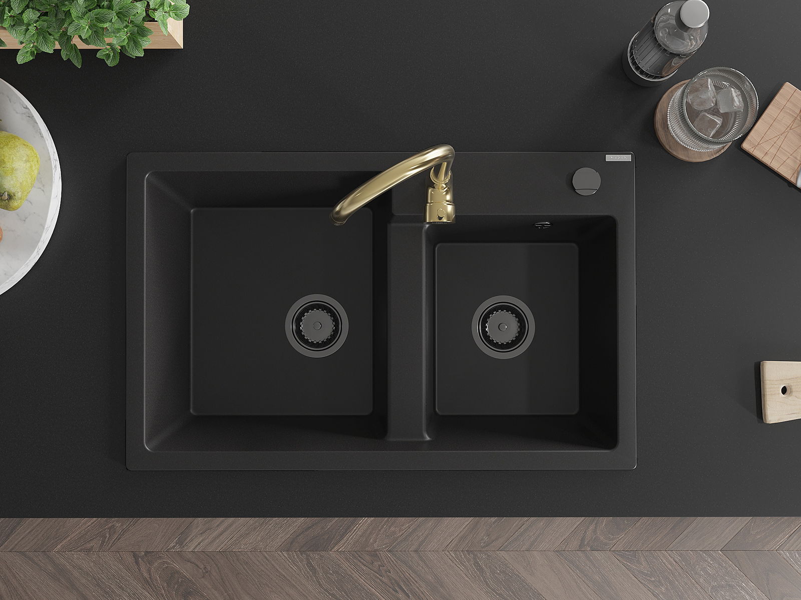 Chiuveta are o gaură prezentată cu un diametru de 35 mm pentru auto -burst. Poate fi folosit, printre altele Pentru montarea unui distribuitor de lichid care va elimina prezența sticlelor de plastic în bucătărie și îi va oferi un finisaj elegant.