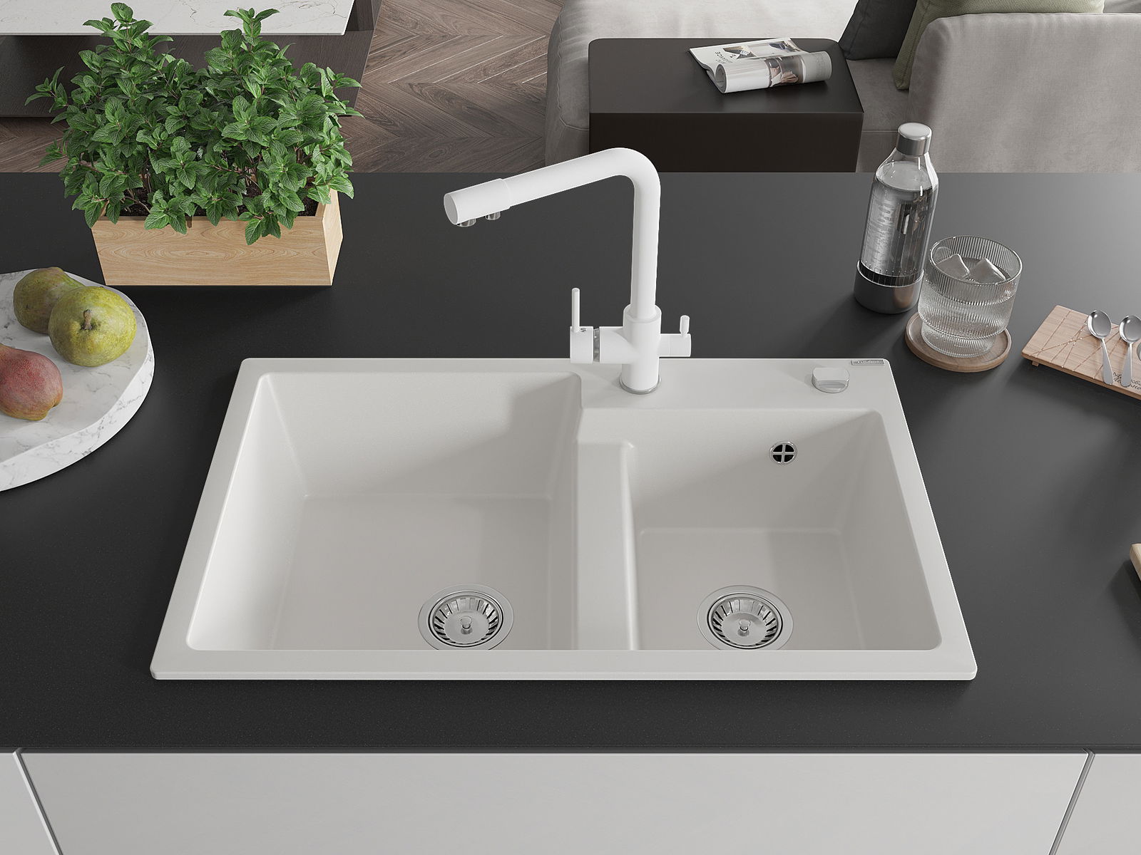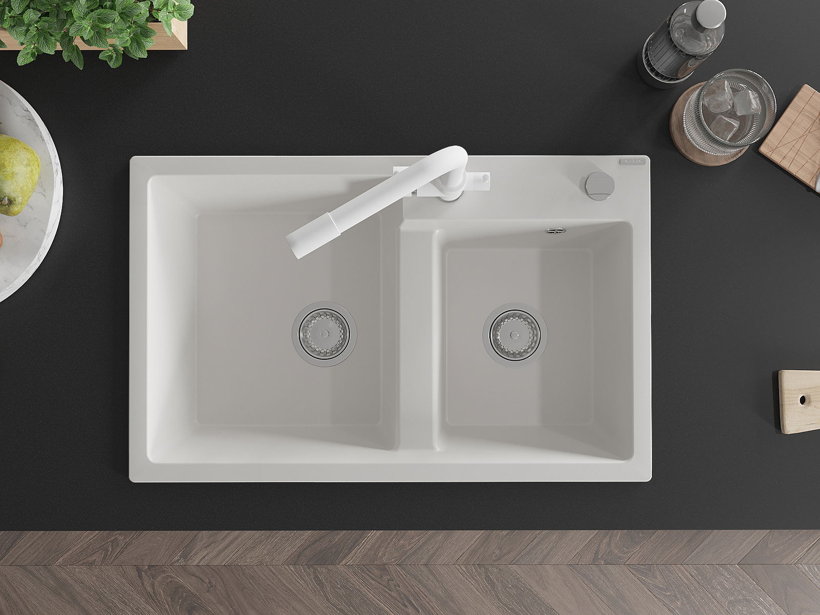 Suprafața chiuvetei este rezistentă la pete și decolorare, ceea ce o face ușor de întreținut și își păstrează culoarea pentru o perioadă lungă de utilizare. Un complet estetic și practic pentru orice bucătărie.