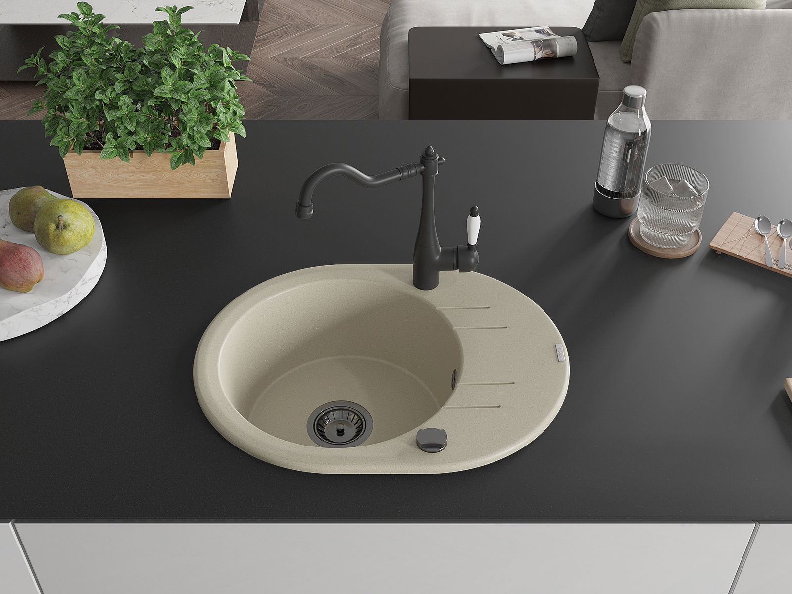 Suprafața chiuvetei este rezistentă la pete și decolorarea, datorită căreia este ușor de curățat și își păstrează culoarea mult timp. Estetică și practic completarea fiecărei bucătării.