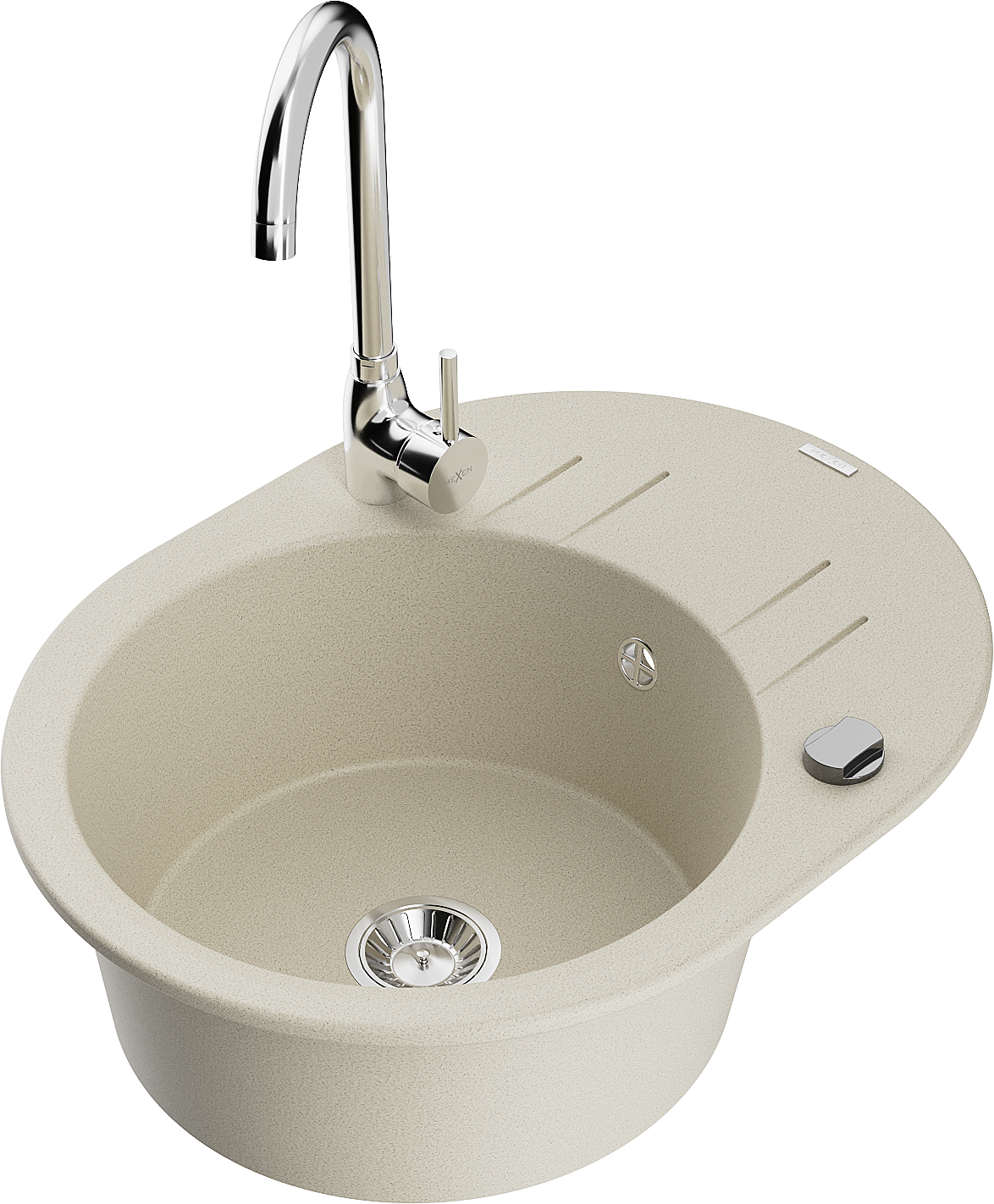 Mexen Kevin chiuvetă de granit cu 1 compartiment, cu scurgător și baterie de bucătărie Telma, bej - 6517-69-670200-00