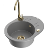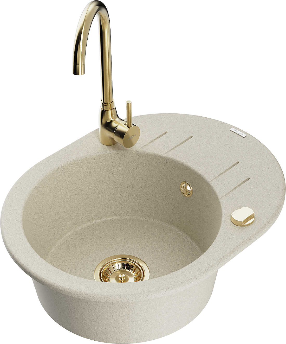 Mexen Kevin chiuvetă de granit cu 1 compartiment cu scurgător și baterie de bucătărie Telma, bej - 6517-69-670200-50