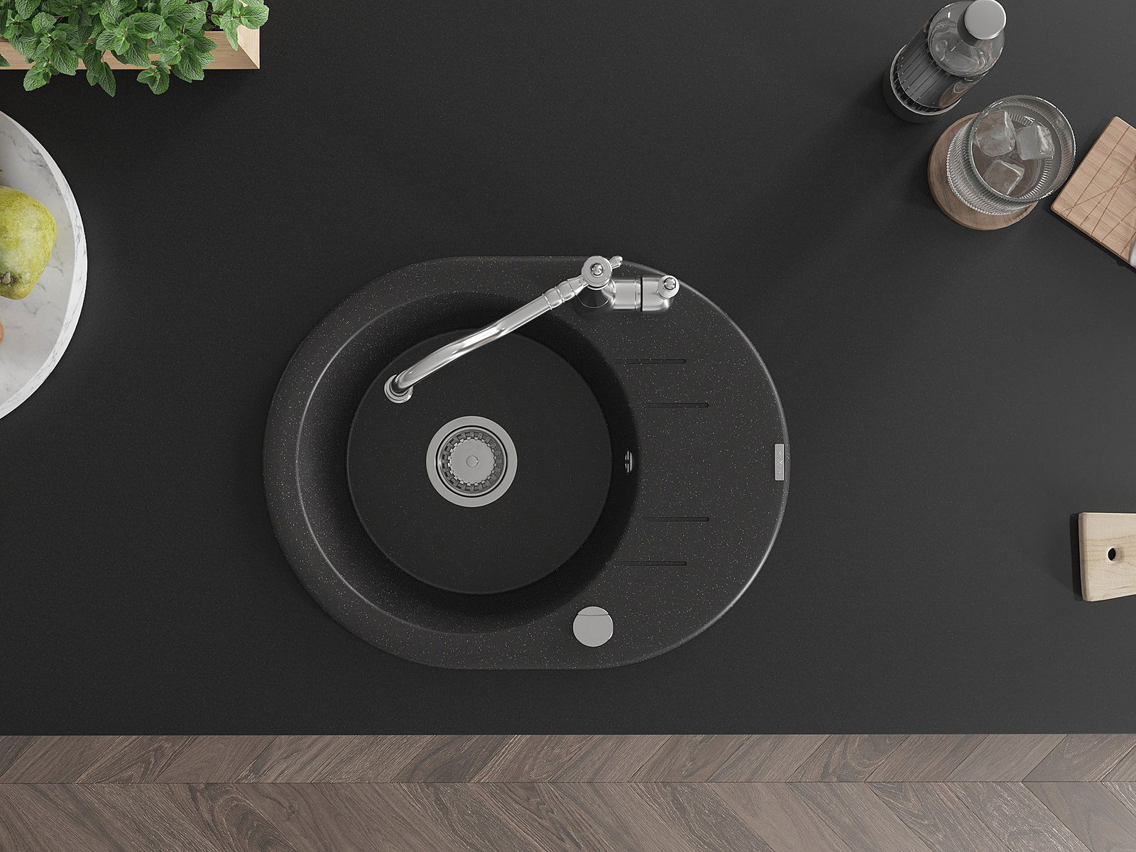 Chiuveta a fost realizată din granit de înaltă calitate. Reprezintă un complement elegant și, mai presus de toate, practic pentru orice bucătărie, indiferent de stilul acesteia. Calitatea înaltă și durabilitatea granitului asigură o utilizare de lungă durată.