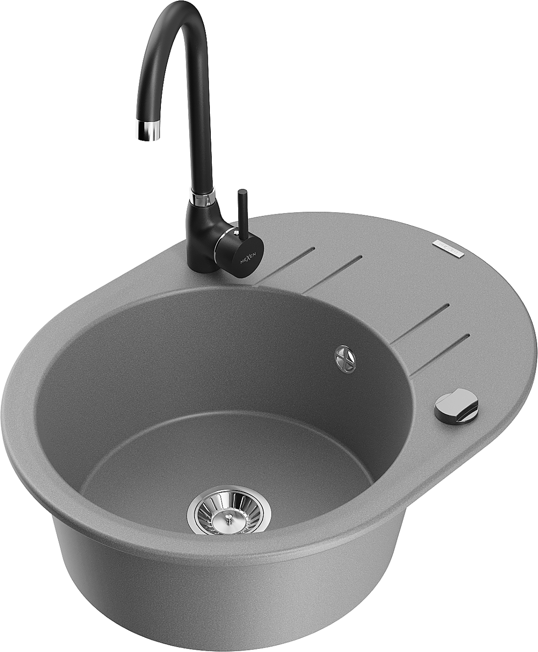 Mexen Kevin chiuvetă granit 1-cameră cu scurgător și baterie de bucătărie Telma, gri - 6517-71-670200-70