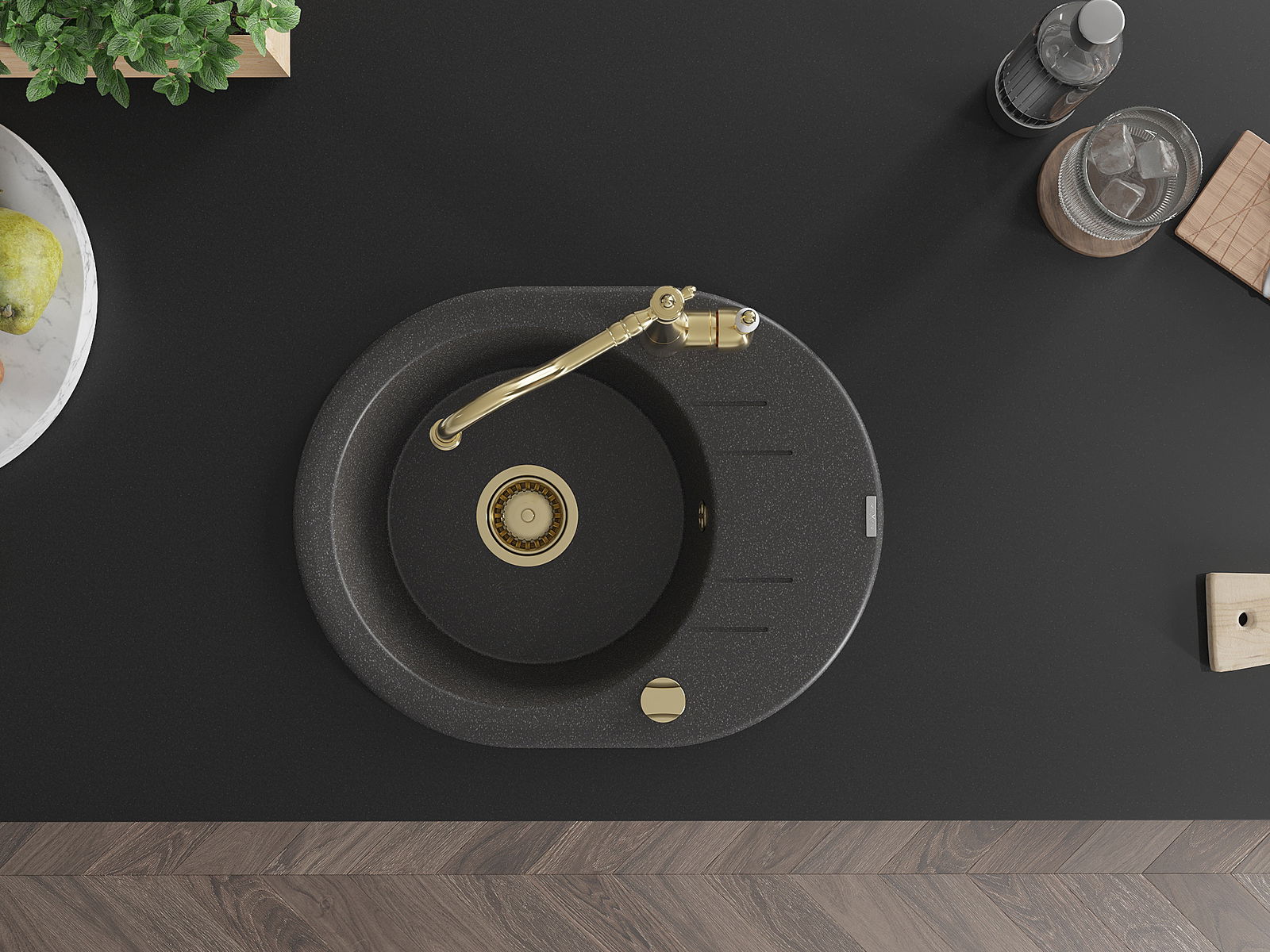 Suprafața chiuvetei este rezistentă la pete și decolorarea, datorită căreia este ușor de curățat și își păstrează culoarea mult timp. Estetică și practic completarea fiecărei bucătării.