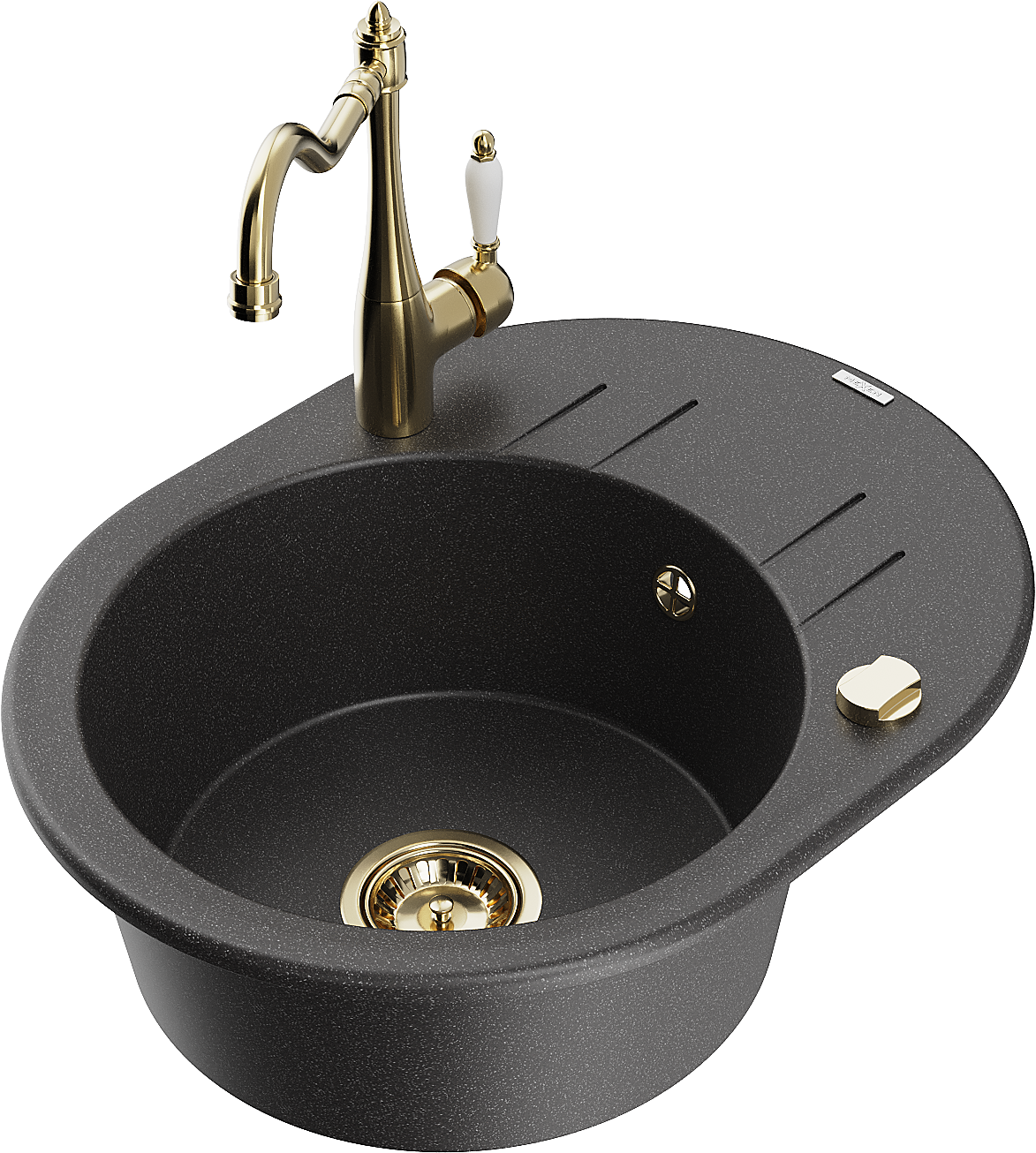 Chiuveta are 2 găuri legate cu un diametru de 35 mm, pentru auto -burst. Pot fi folosite, printre altele Pentru montarea unui distribuitor de lichid care va elimina prezența sticlelor de plastic în bucătărie și îi va oferi un finisaj elegant.