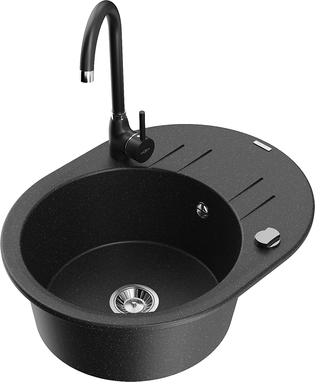 Mexen Kevin chiuvetă de bucătărie din granit cu 1 compartiment cu picurător și baterie de bucătărie Telma, negru/argintiu metal?