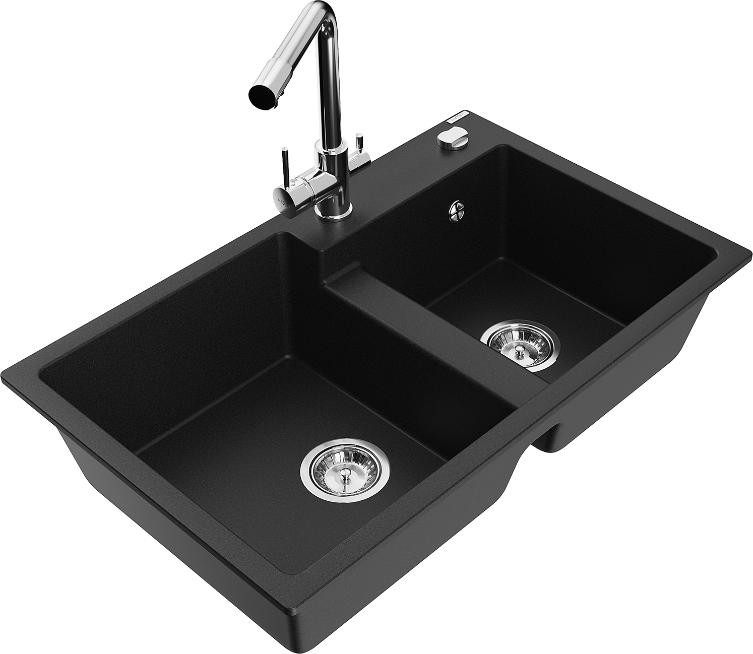 Mexen Tomas chiuvetă de granit cu 2 compartimente cu baterie de bucătărie Duero, negru - 6516-77-671600-00