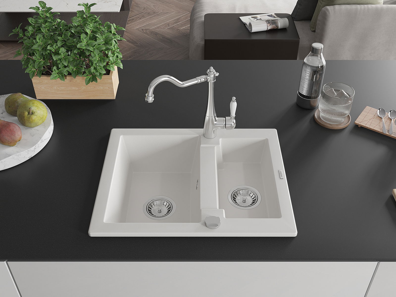 Suprafața chiuvetei este rezistentă la pete și decolorarea, datorită căreia este ușor de curățat și își păstrează culoarea mult timp. Estetică și practic completarea fiecărei bucătării.