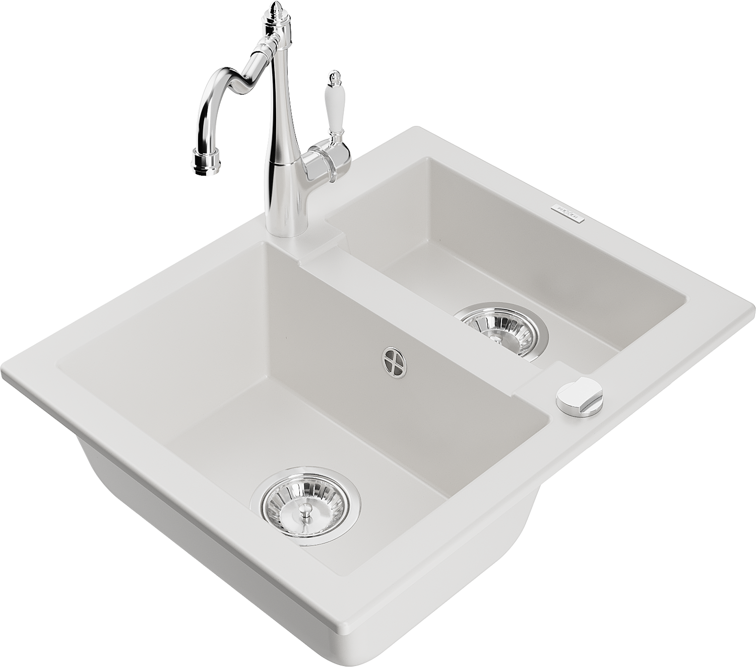 Mexen Carlos chiuvetă de granit cu 1,5 compartimente cu baterie de bucătărie Carla, alb - 6518-20-670700-00