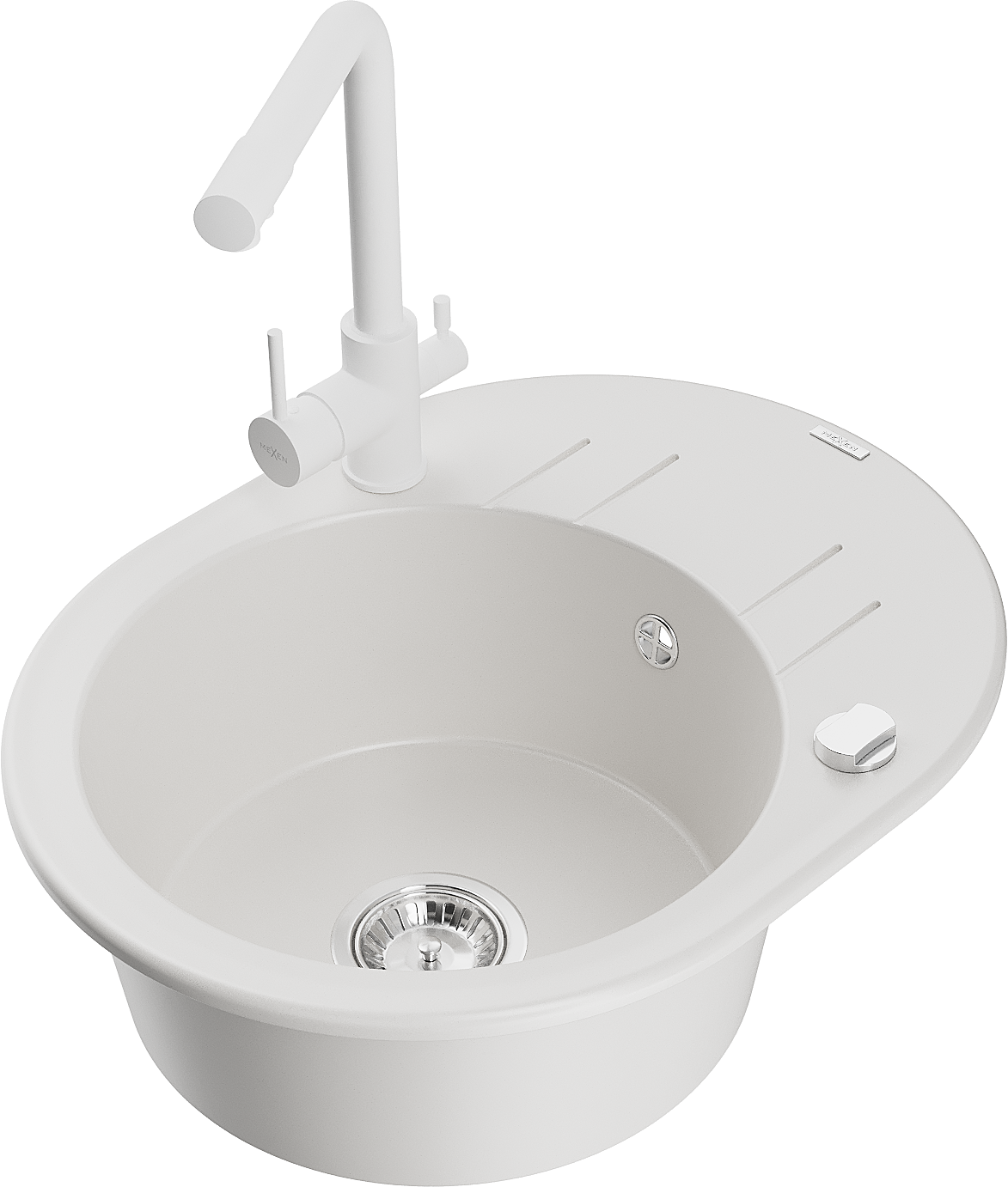 Mexen Kevin chiuvetă de granit cu o cuvă, cu scurgător și baterie de bucătărie Duero, albă - 6517-20-671600-20