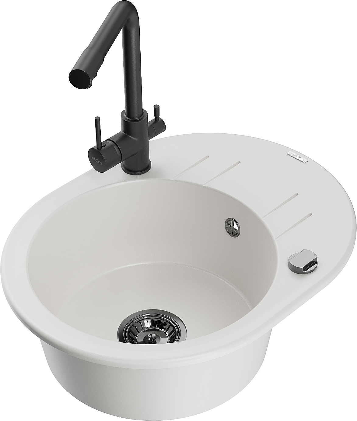 Mexen Kevin chiuvetă de bucătărie granit 1-cameră cu scurgător și baterie de bucătărie Duero, alb - 6517-20-671600-70
