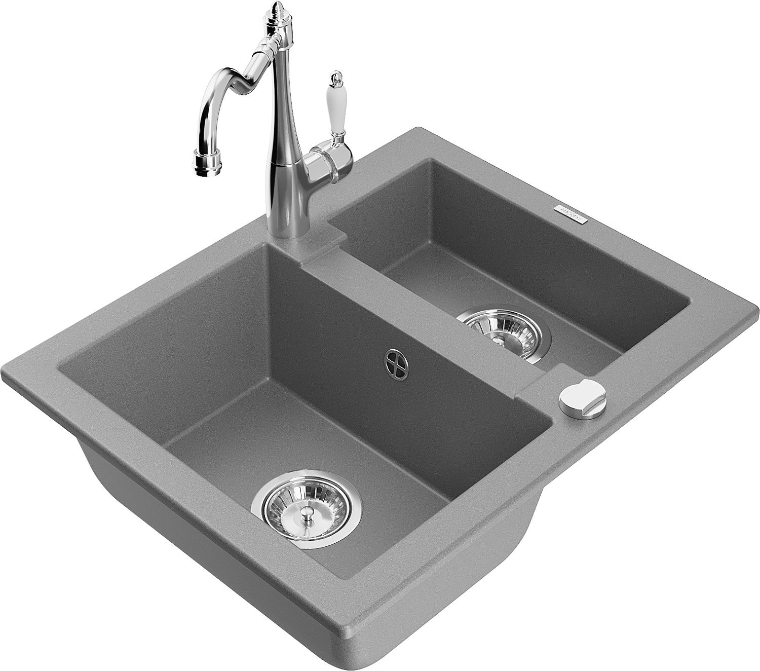 Mexen Carlos chiuvetă de bucătărie din granit, cu 1,5 compartimente, cu baterie de bucătărie Carla, gri - 6518-71-670700-00