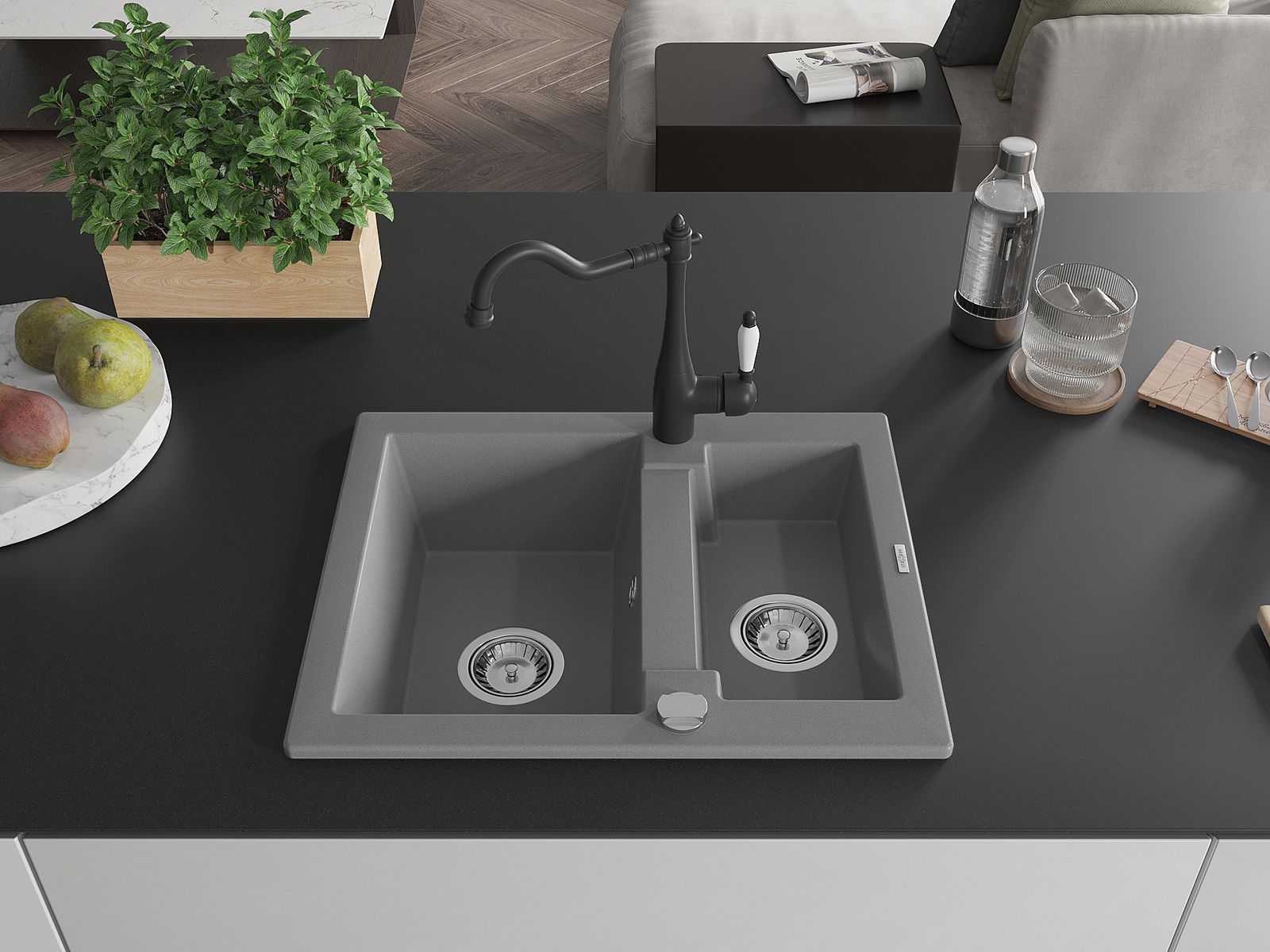 Suprafața chiuvetei este rezistentă la pete și decolorarea, datorită căreia este ușor de curățat și își păstrează culoarea mult timp. Estetică și practic completarea fiecărei bucătării.