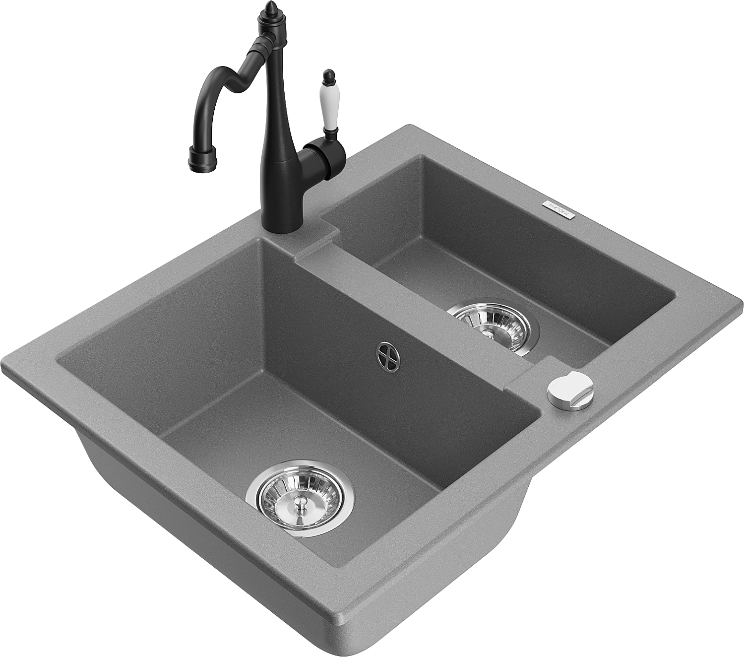 Mexen Carlos chiuvetă de granit 1,5 compartimente cu baterie de bucătărie Carla, gri - 6518-71-670700-70