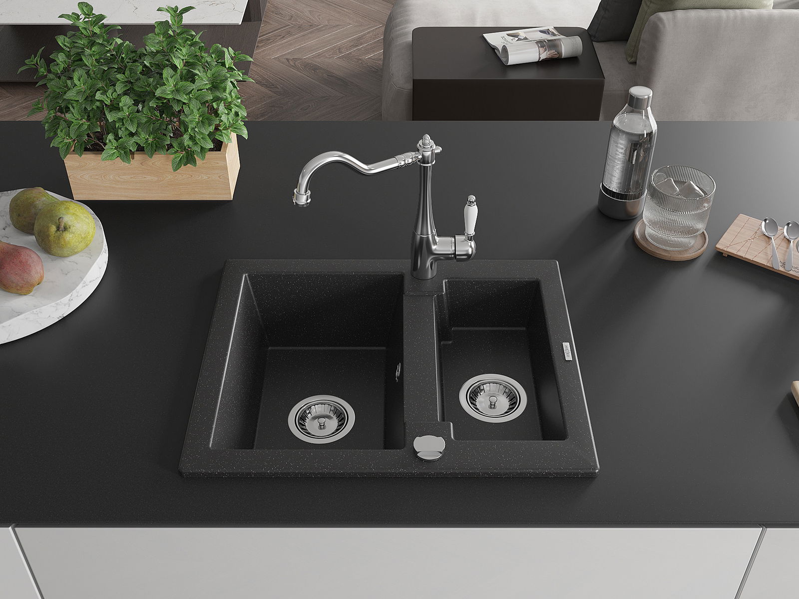 Chiuveta a fost realizată din granit de înaltă calitate. Reprezintă un complement elegant și, mai presus de toate, practic pentru orice bucătărie, indiferent de stilul acesteia. Calitatea înaltă și durabilitatea granitului asigură o utilizare de lungă durată.