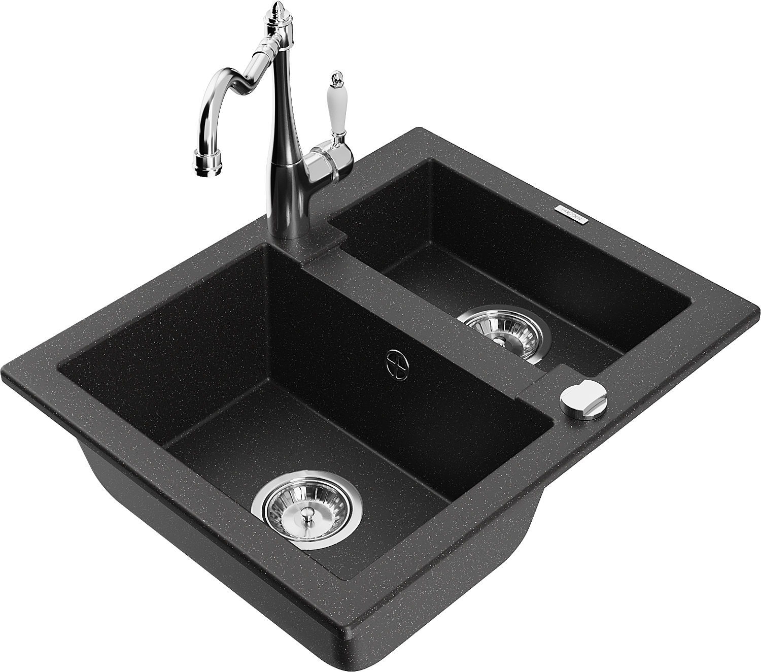 Mexen Carlos chiuvetă de granit cu 1,5 cuve și baterie bucătărie Carla, negru/argintiu metalic - 6518-73-670700-00
