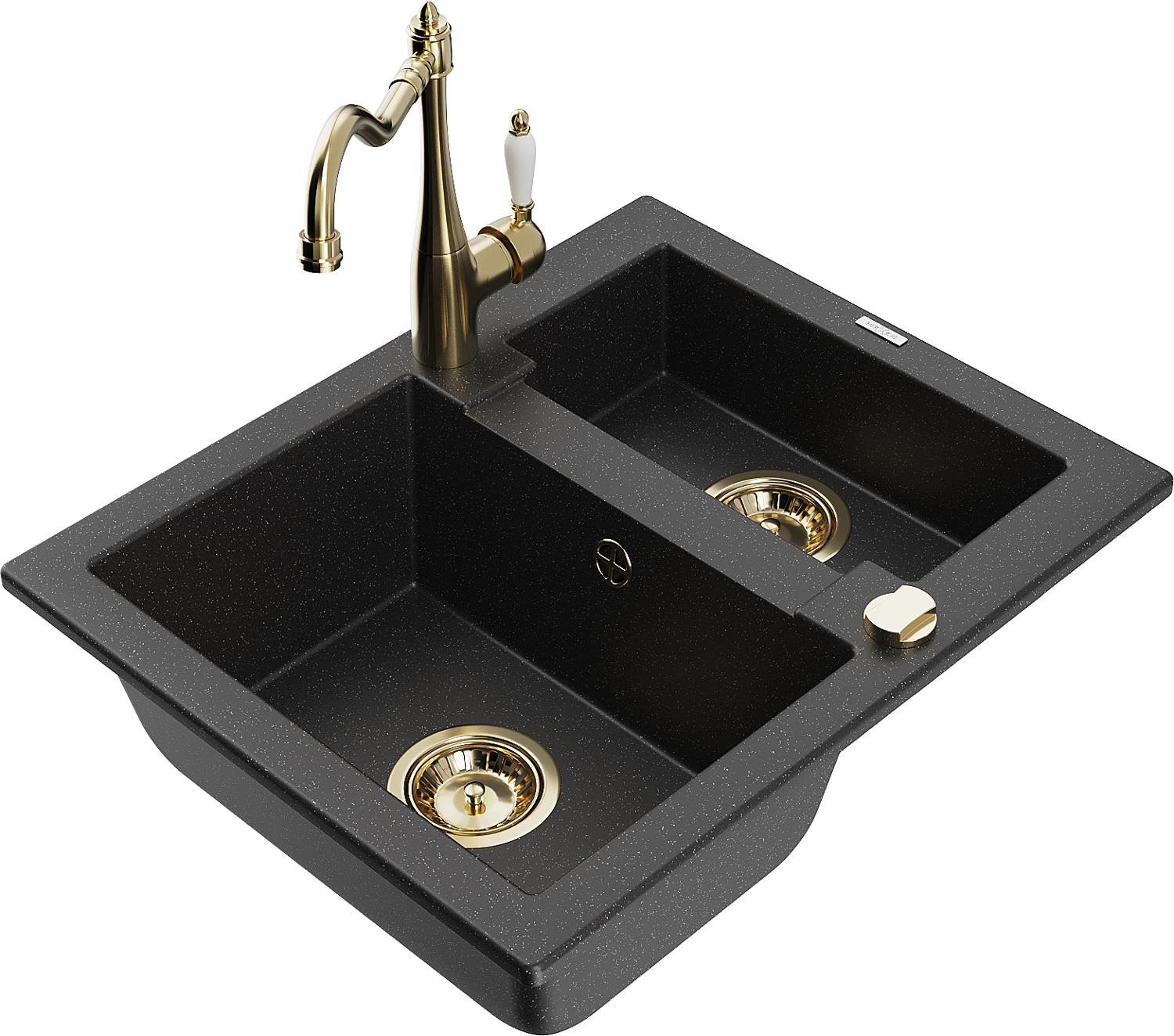 Mexen Carlos chiuvetă de granit cu 1,5 compartimente cu baterie de bucătărie Carla, negru/argintiu metalizat