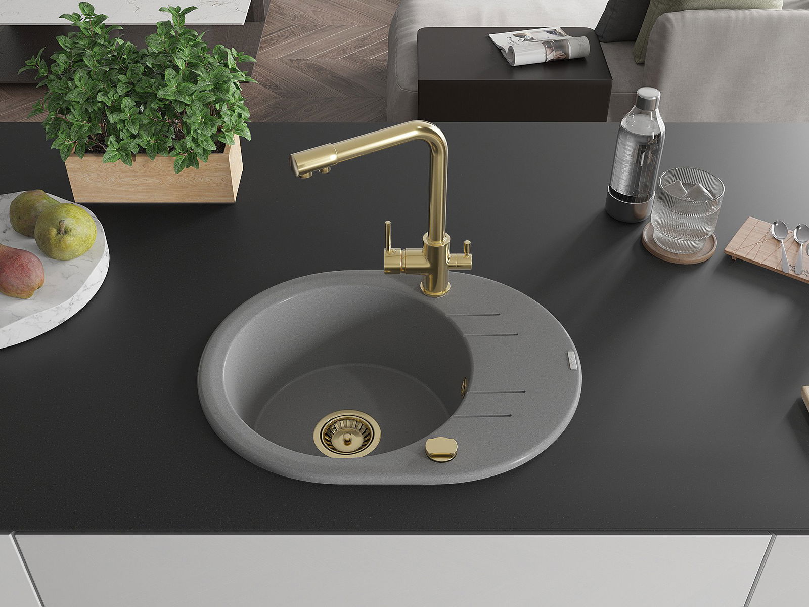 Chiuveta a fost realizată din granit de înaltă calitate. Reprezintă un complement elegant și, mai presus de toate, practic pentru orice bucătărie, indiferent de stilul acesteia. Calitatea înaltă și durabilitatea granitului asigură o utilizare de lungă durată.
