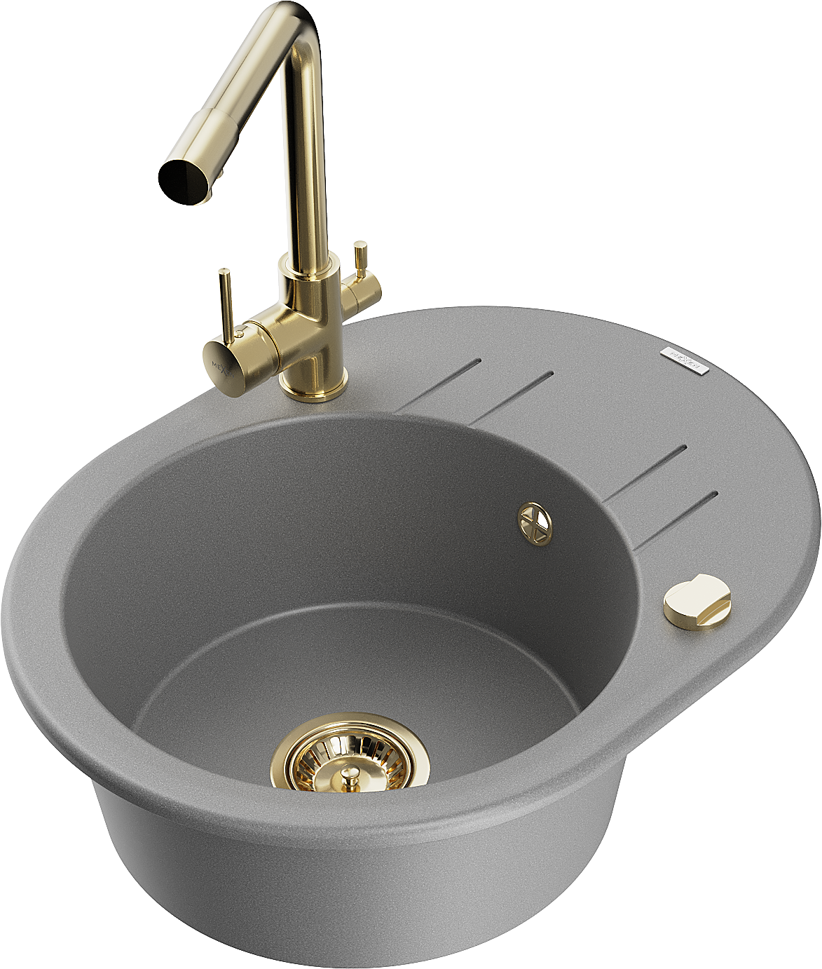 Mexen Kevin chiuvetă de granit cu 1 compartiment cu picurător și baterie de bucătărie Duero, gri - 6517-71-671600-50