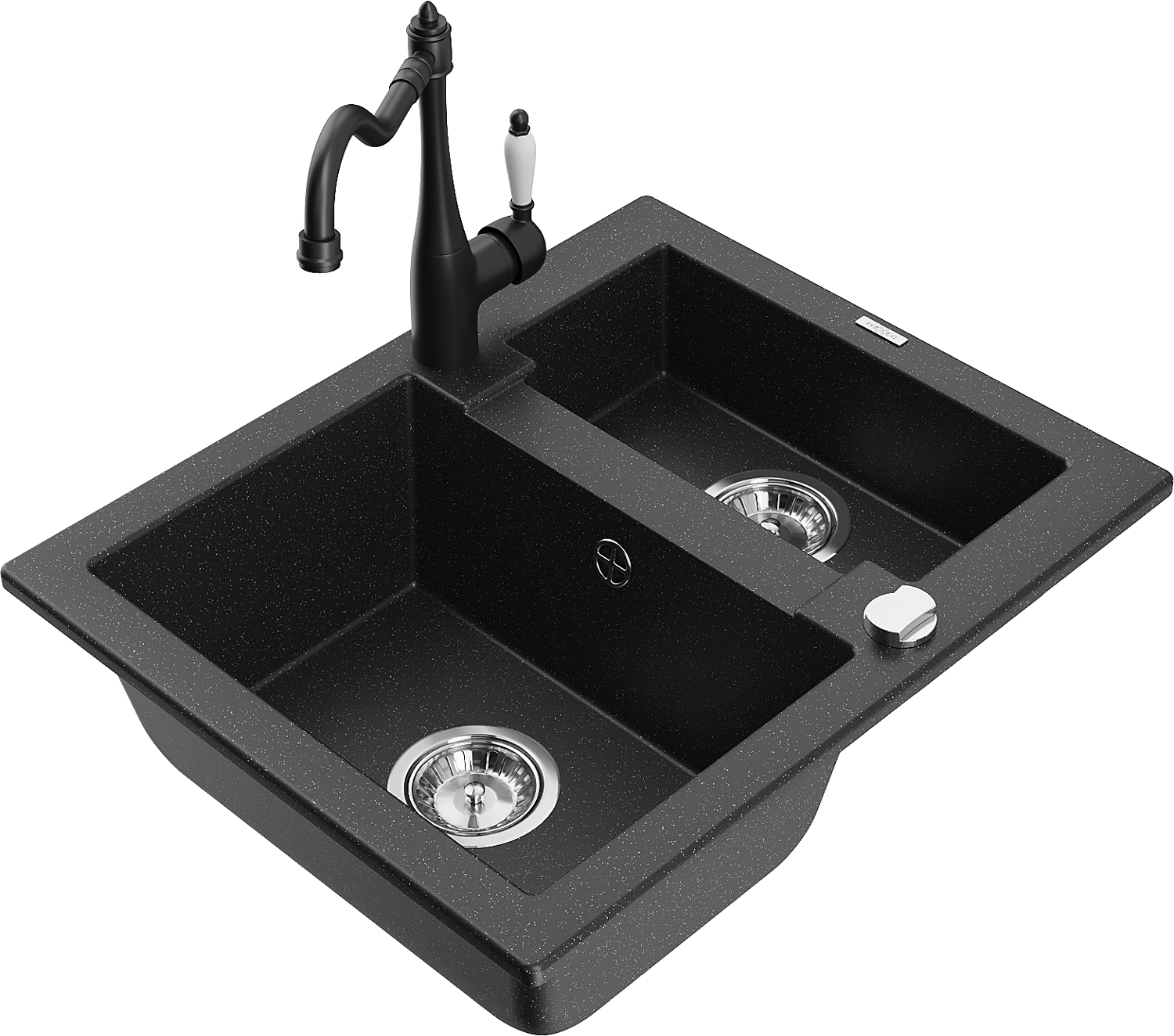 Mexen Carlos chiuvetă de bucătărie din granit cu 1,5 cuve și baterie Carla, negru/argintiu metalizat - 6518-73-670700-70