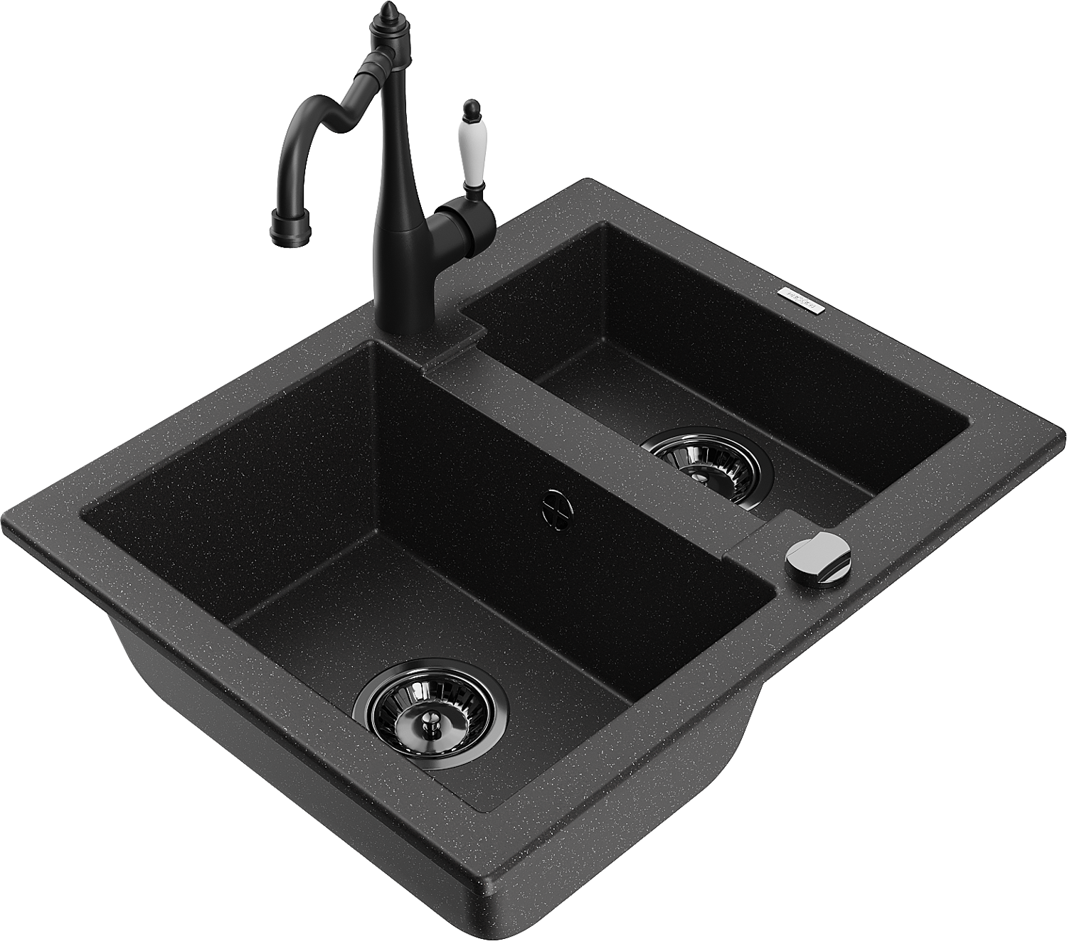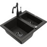 Mexen Carlos chiuvetă de granit cu 1,5 compartimente și baterie de bucătărie Carla, negru/metalic argintiu