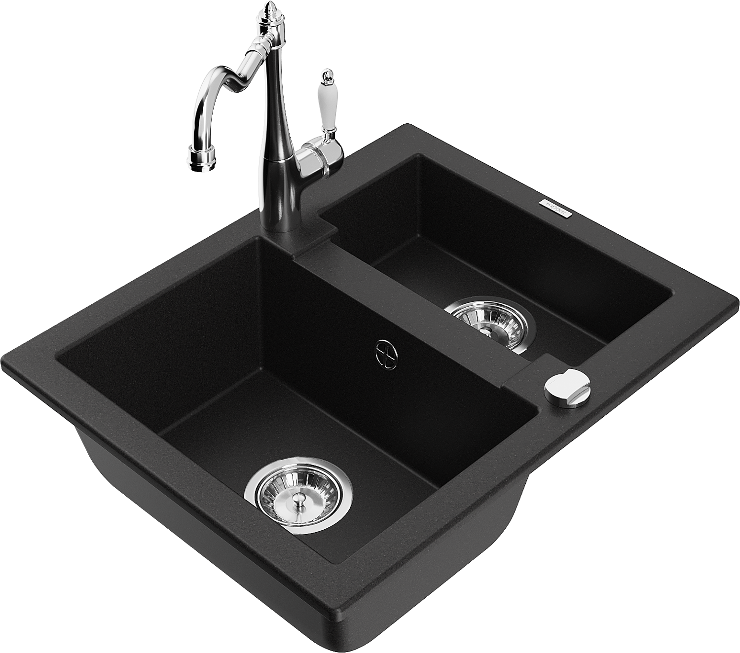 Mexen Carlos chiuvetă de granit 1,5-camere cu baterie de bucătărie Carla, negru - 6518-77-670700-00