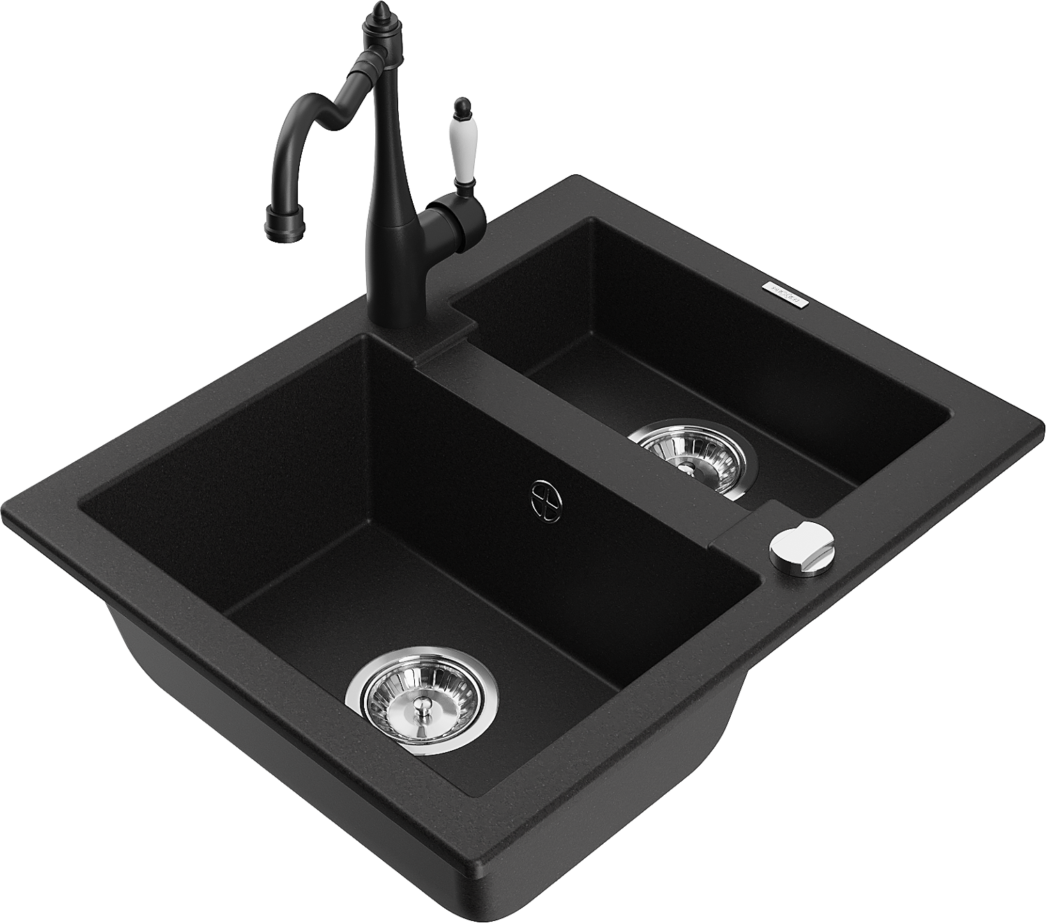 Mexen Carlos chiuvetă de bucătărie din granit 1,5 compartimente cu baterie de bucătărie Carla, negru - 6518-77-670700-70