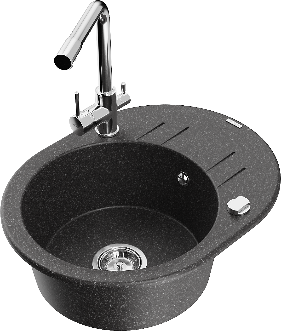 Mexen Kevin chiuvetă de bucătărie din granit cu o cuvă, cu scurgător și baterie Duero, negru pătat - 6517-76-671600-00