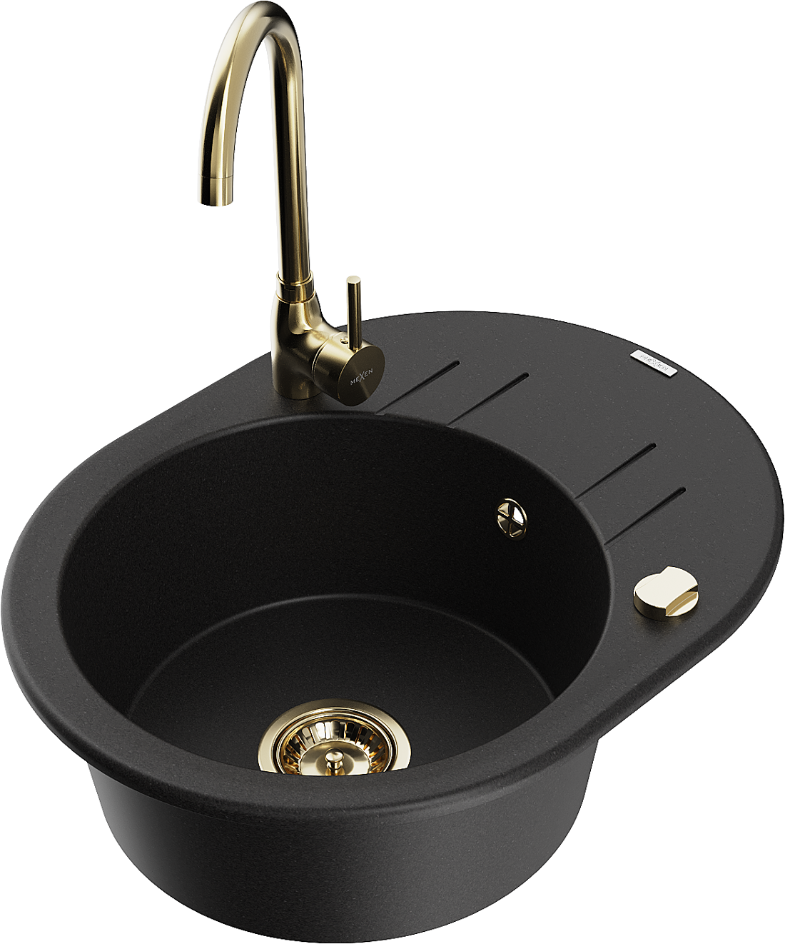 Mexen Kevin chiuvetă de granit cu o cuvă și scurgător, cu robinet de bucătărie Telma, negru - 6517-77-670200-50