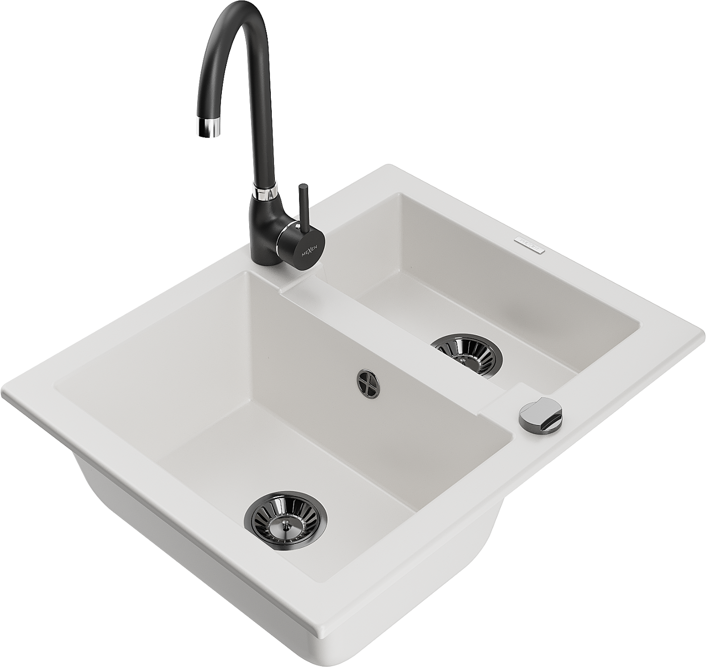 Mexen Carlos chiuvetă granit 1,5-camere cu robinet de bucătărie Telma, alb - 6518-20-670200-70