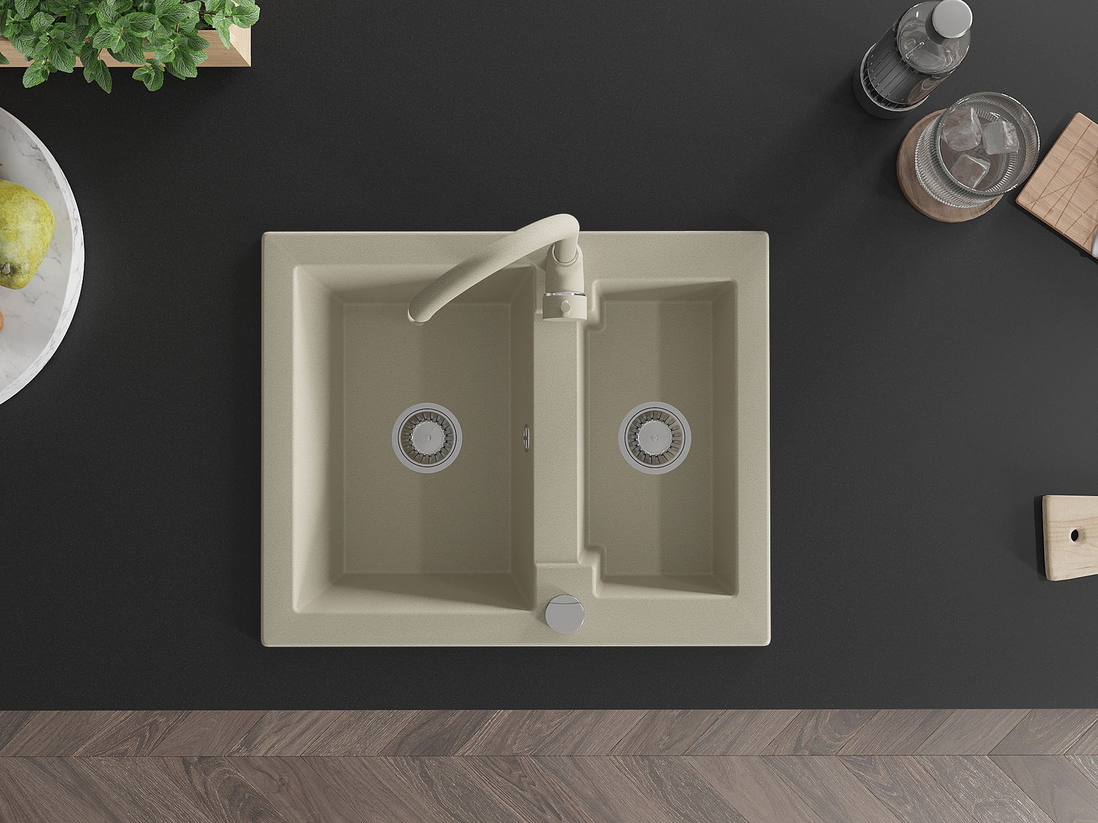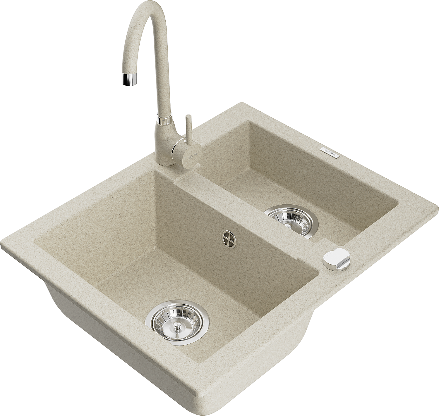 Mexen Carlos chiuvetă de bucătărie din granit cu 1,5 compartimente cu baterie Telma, bej - 6518-69-670200-69