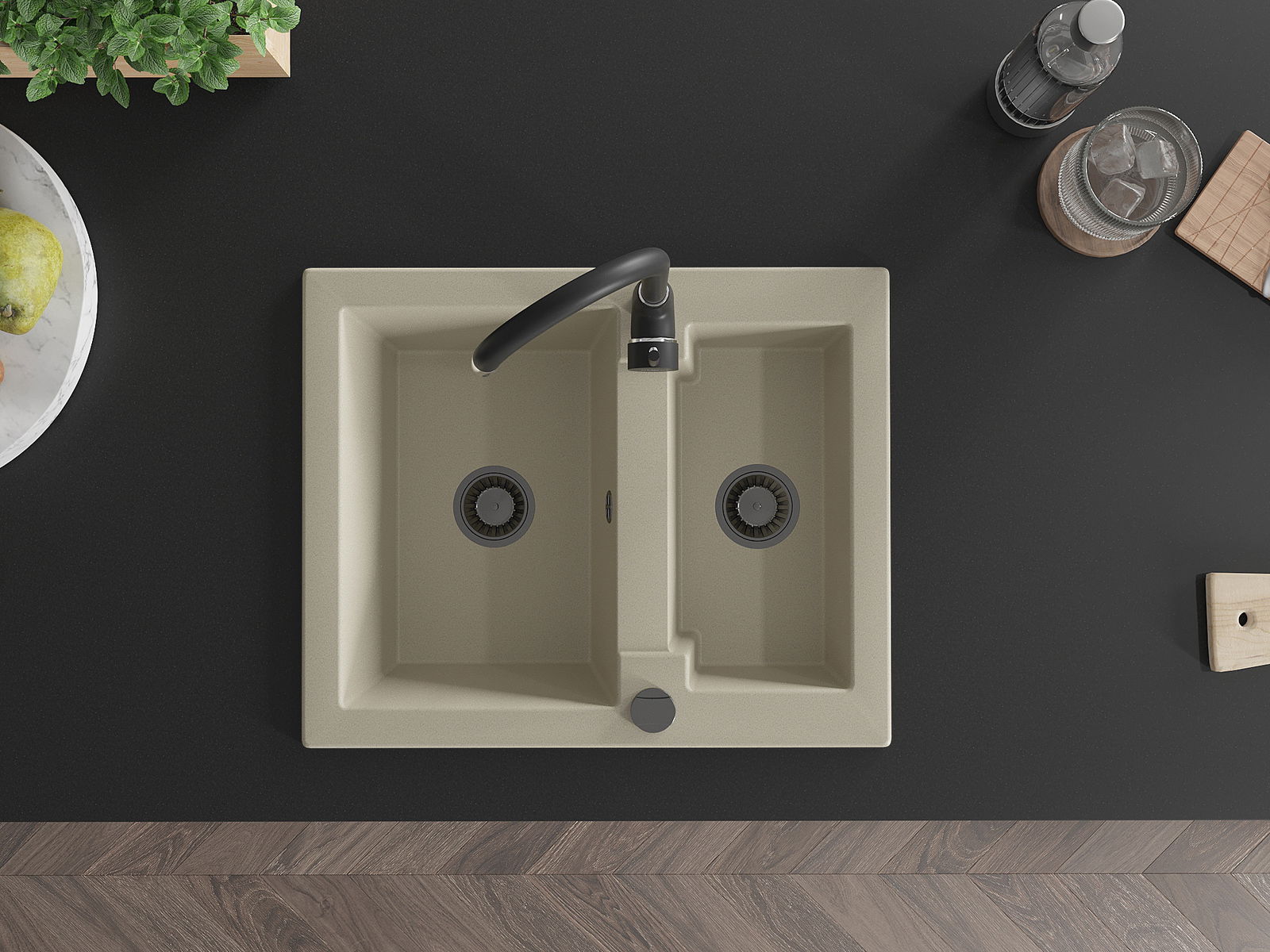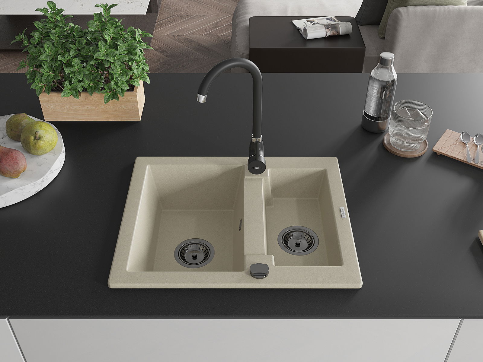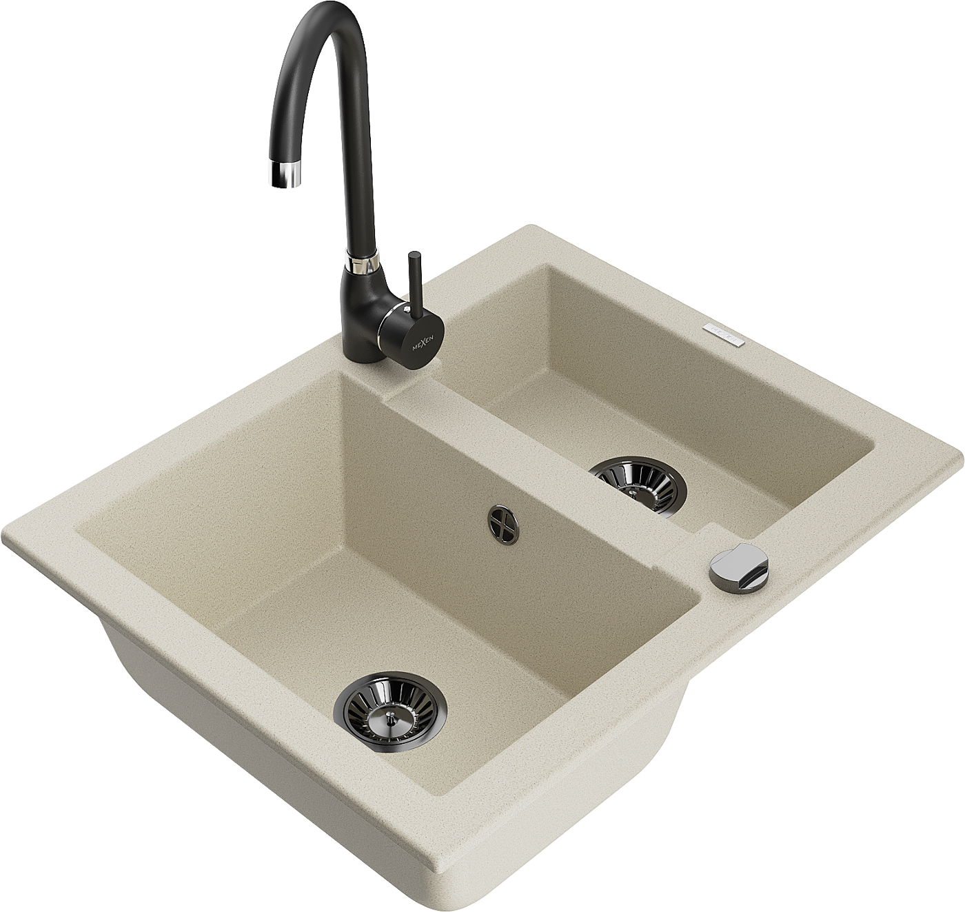 Mexen Carlos chiuvetă de bucătărie din granit cu 1,5 compartimente cu baterie Telma, bej - 6518-69-670200-70