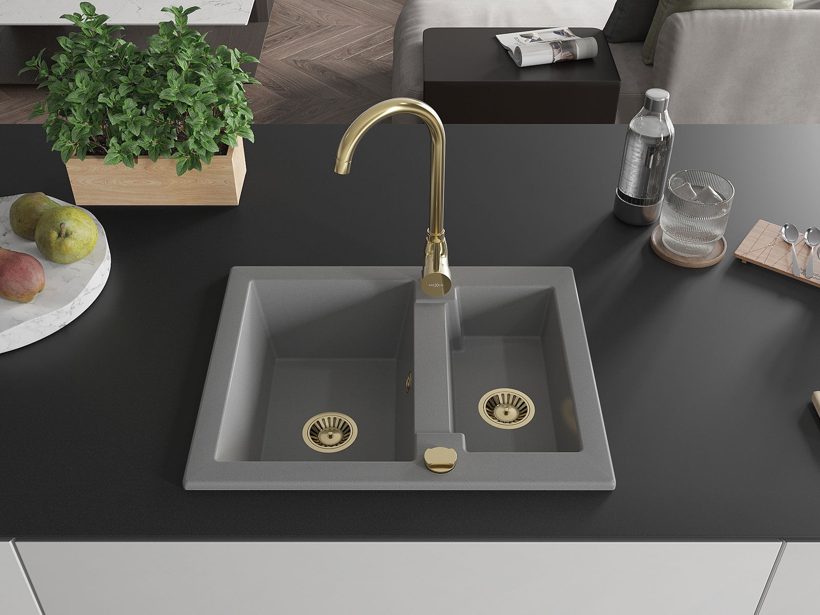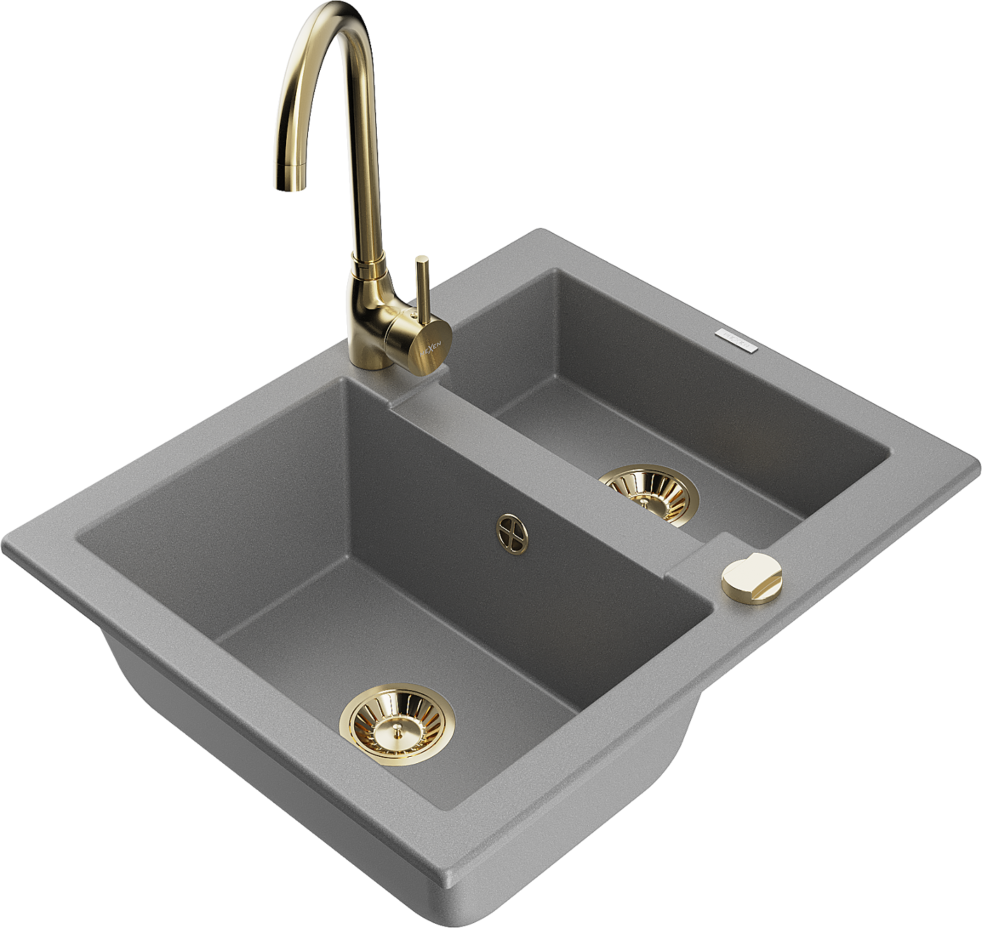 Mexen Carlos chiuvetă din granit cu 1,5 compartimente cu baterie de bucătărie Telma, gri - 6518-71-670200-50