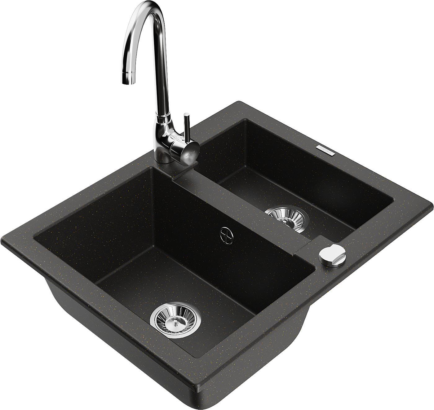 Mexen Carlos chiuvetă de granit 1,5-cupe cu baterie de bucătărie Telma, negru/auriu metalic - 6518-75-670200-00