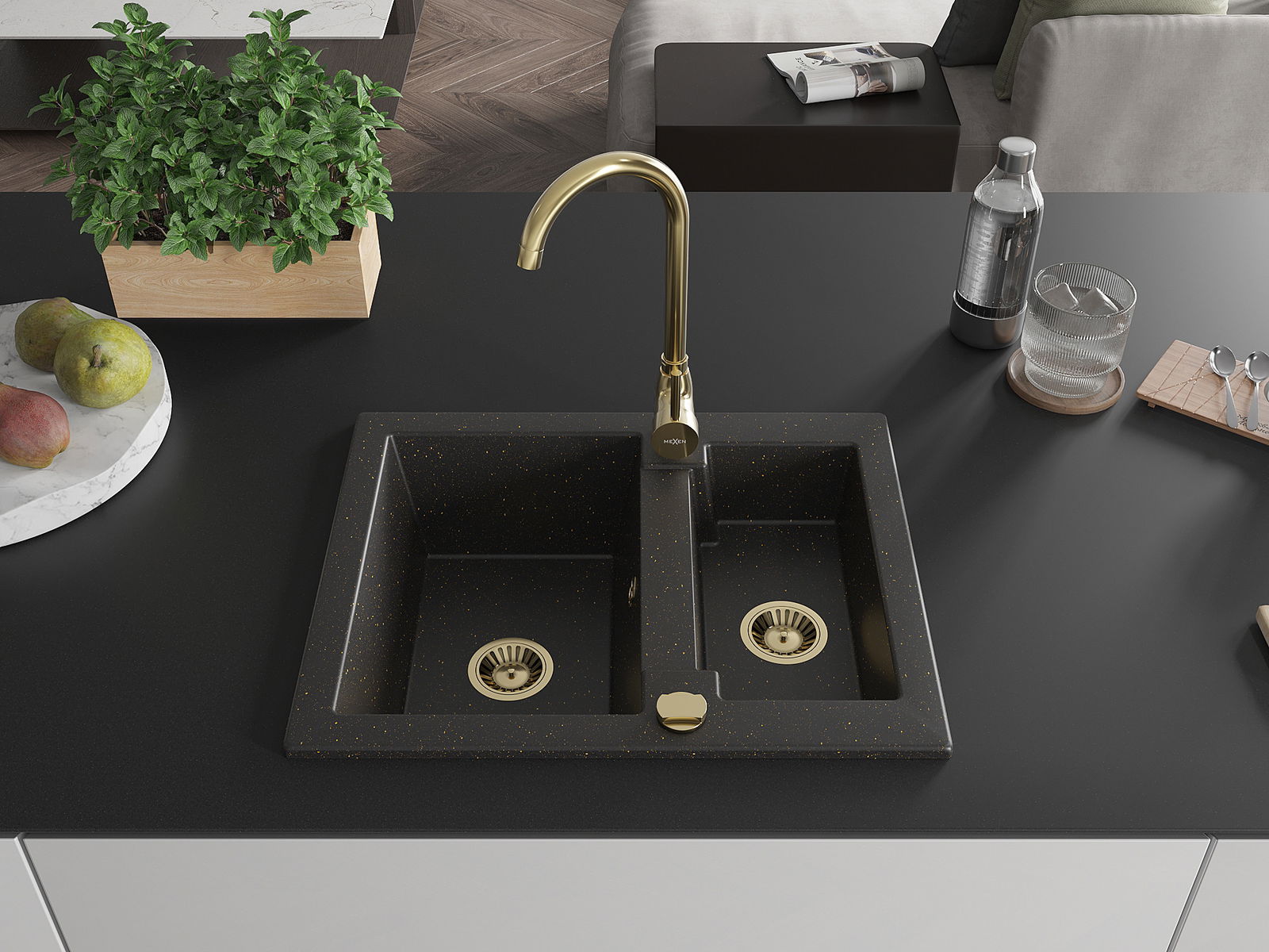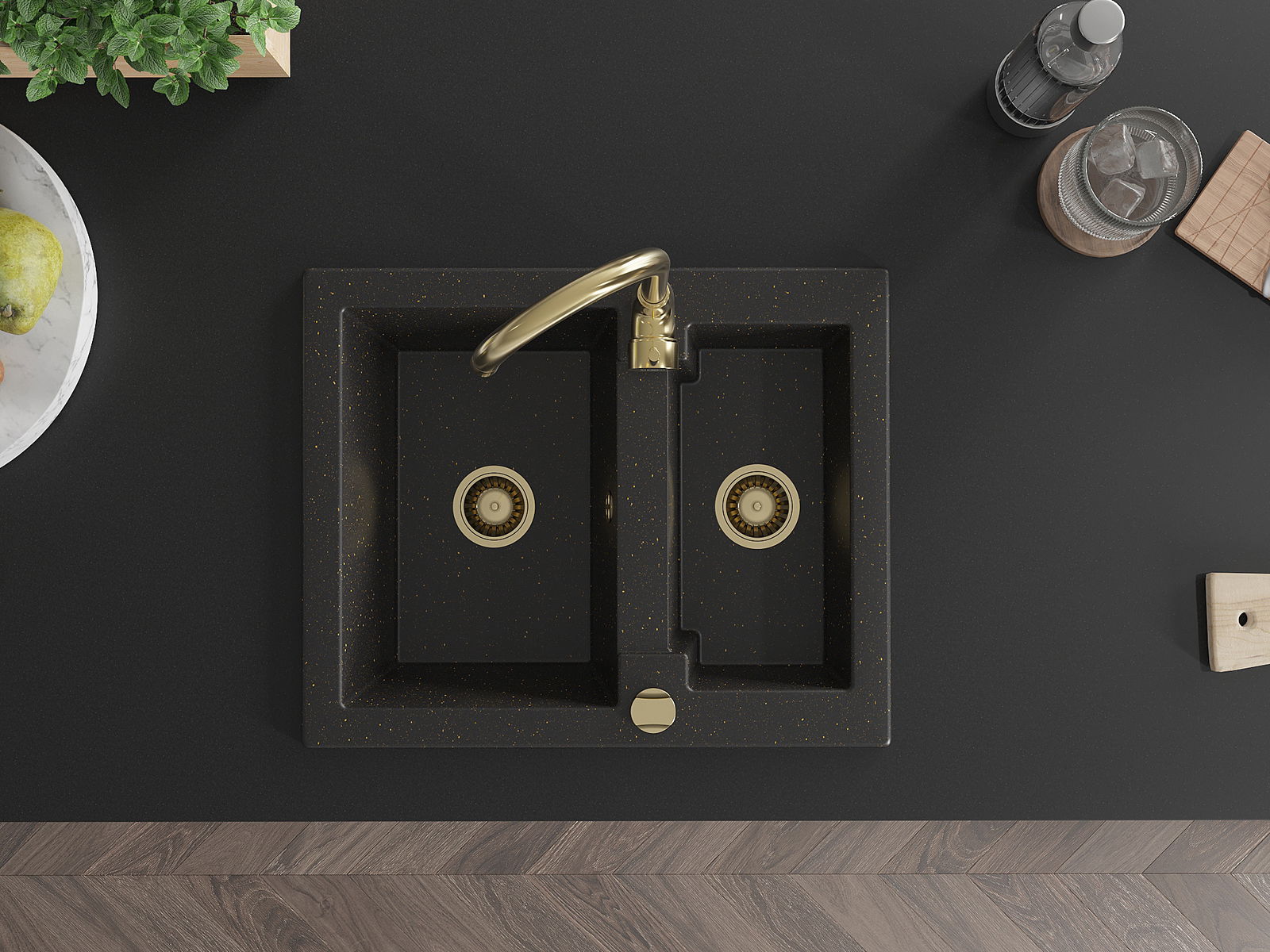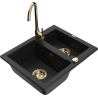 Mexen Carlos chiuvetă din granit 1,5 compartimente cu baterie de bucătărie Telma, negru/auriu metalizat - 6518-75-670200-50