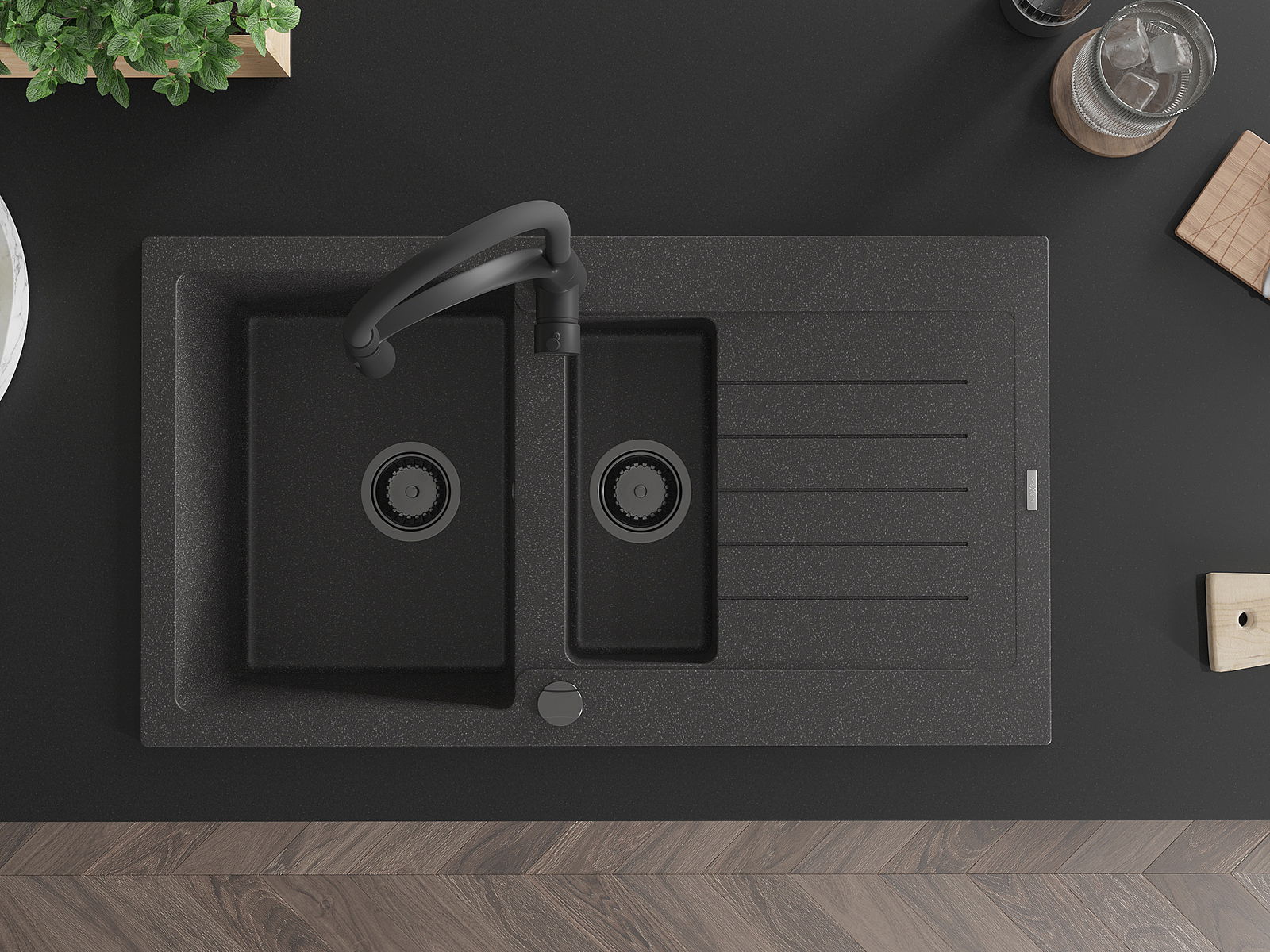 Datorită sistemului de montare universală, chiuveta este reversibilă, iar scurgerea poate fi montată pe blat la stânga sau la dreapta. În acest fel, puteți ajusta cu ușurință pagina la nevoile și condițiile dvs.