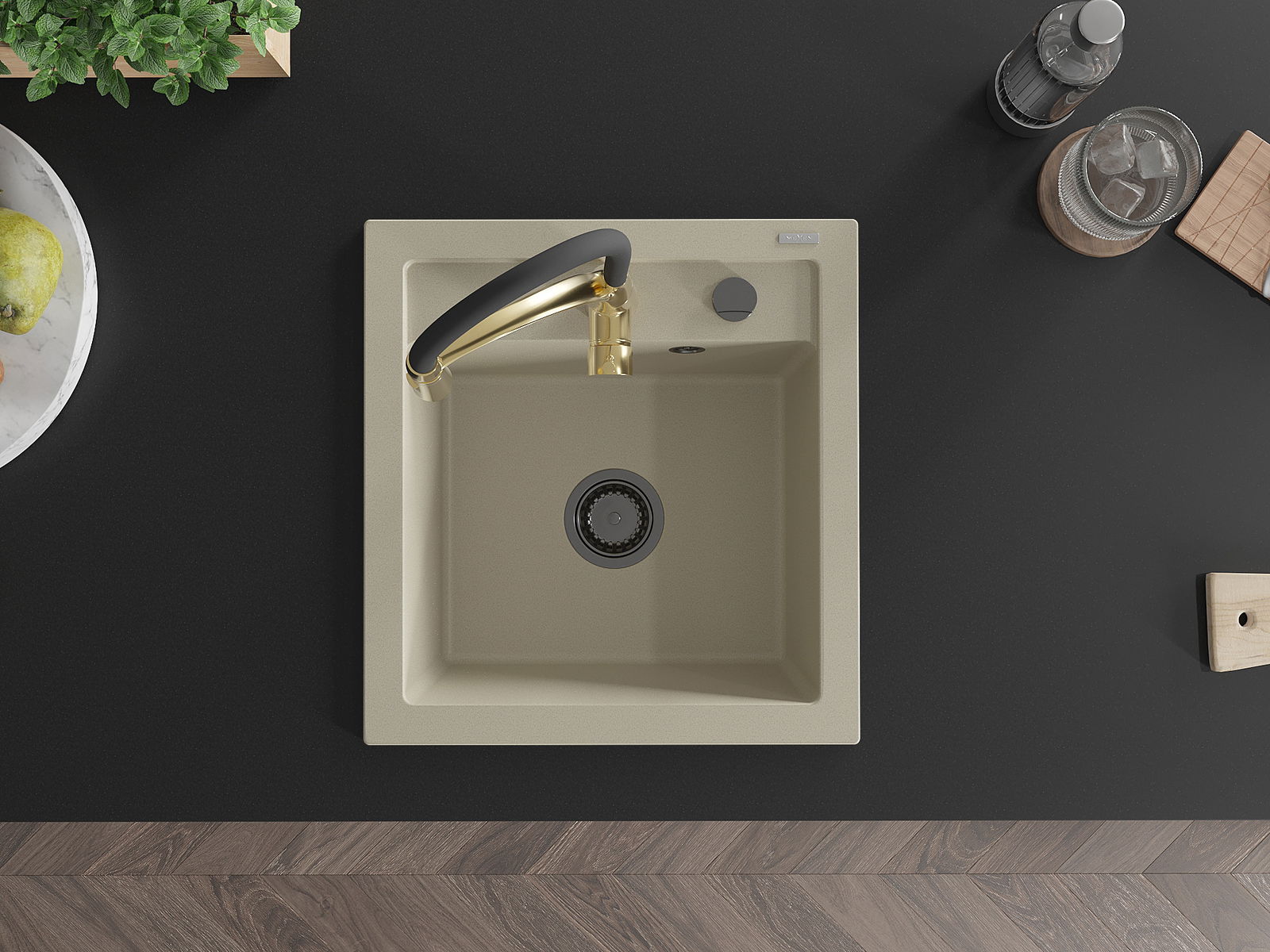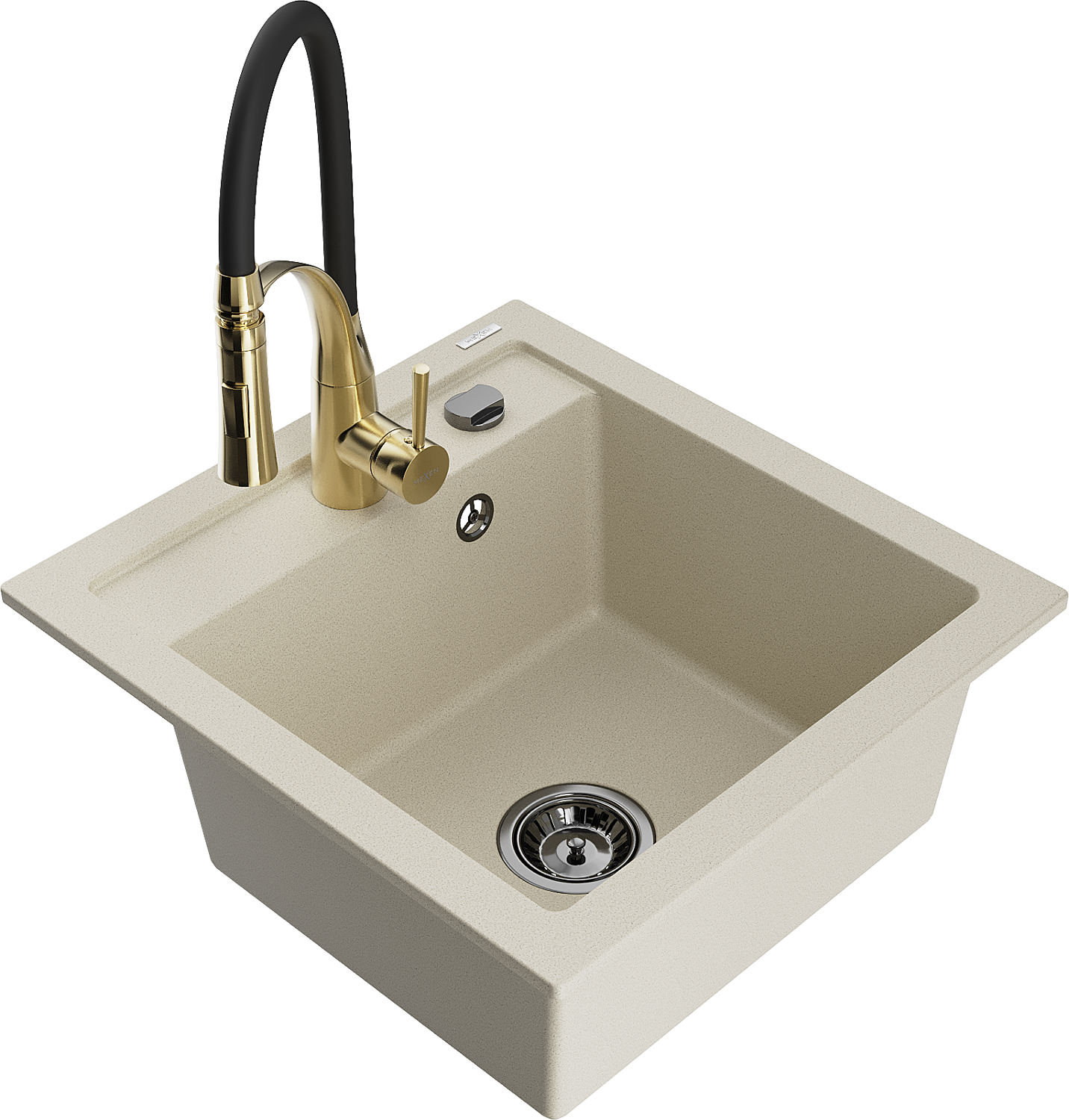 Mexen Vito chiuvetă de bucătărie din granit cu 1 compartiment și baterie de bucătărie Aster, bej - 6503-69-73450-57-B