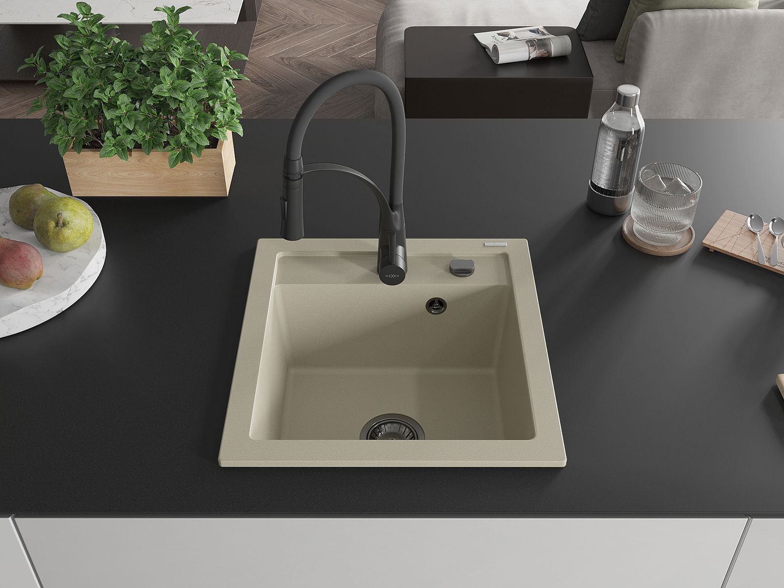 Mexen Vito chiuvetă de granit cu 1 compartiment cu baterie de bucătărie Aster, bej - 6503-69-73450-70-B