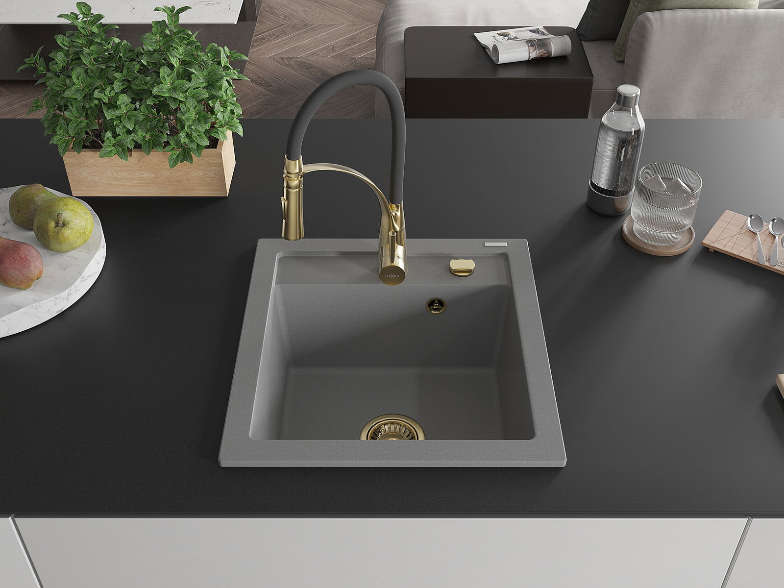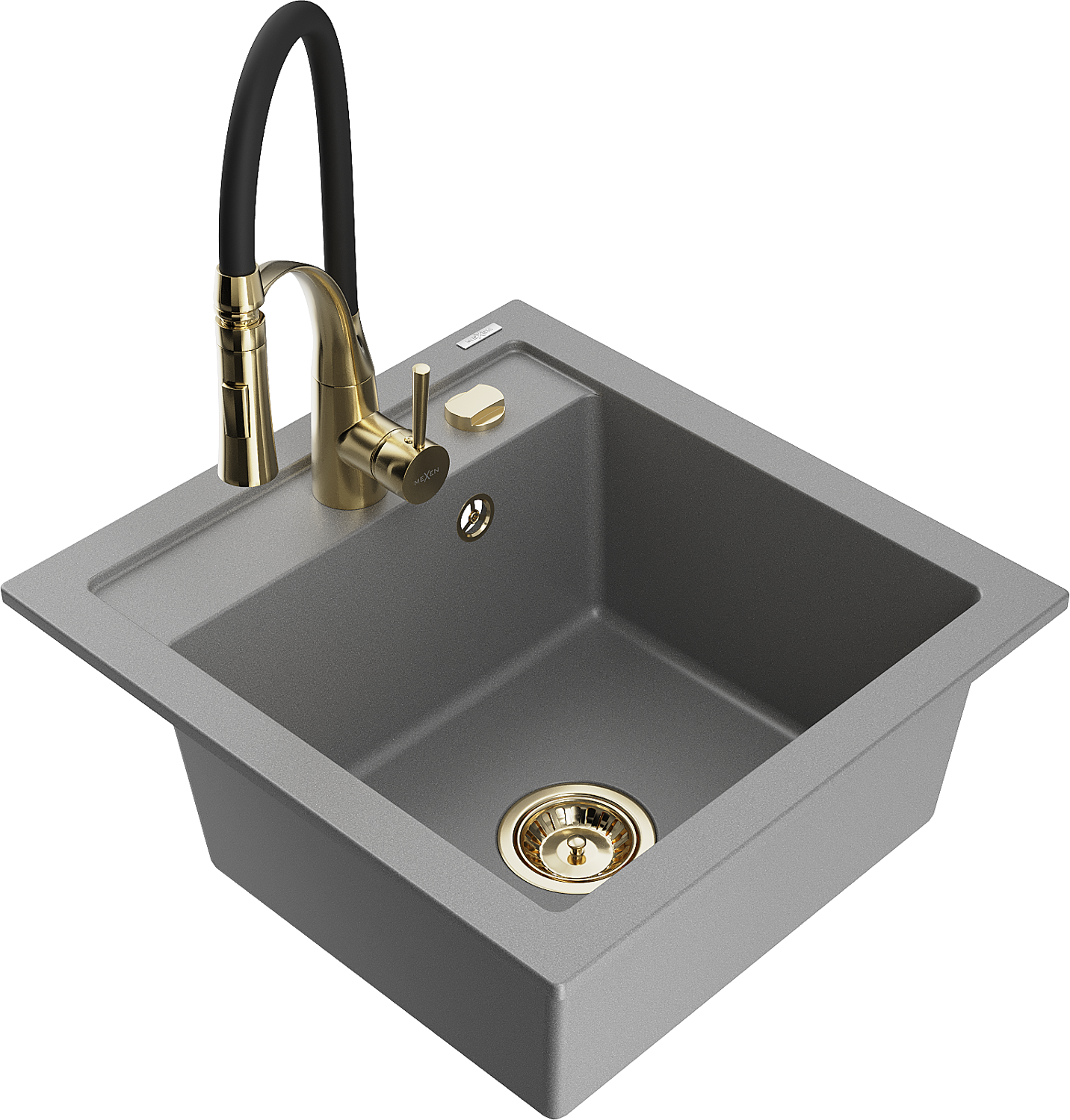 Mexen Vito chiuvetă de bucătărie din granit cu 1 cuvă cu baterie de bucătărie Aster, gri - 6503-71-73450-57-G