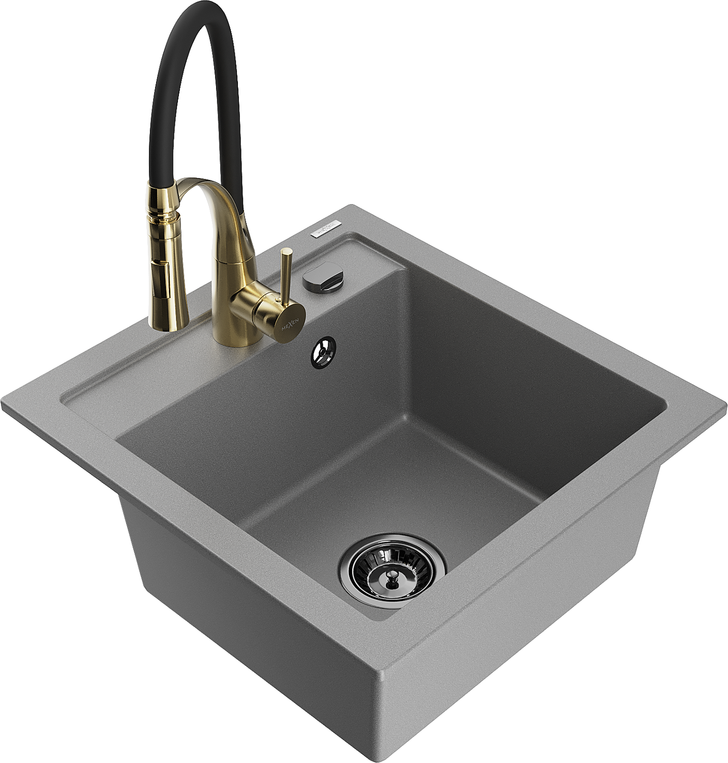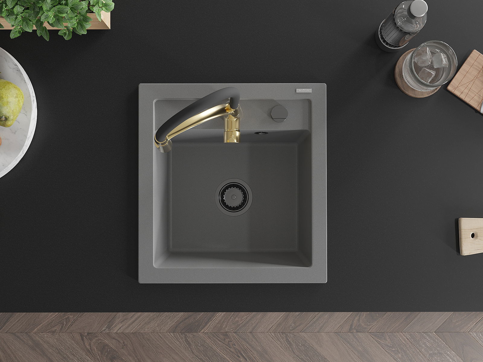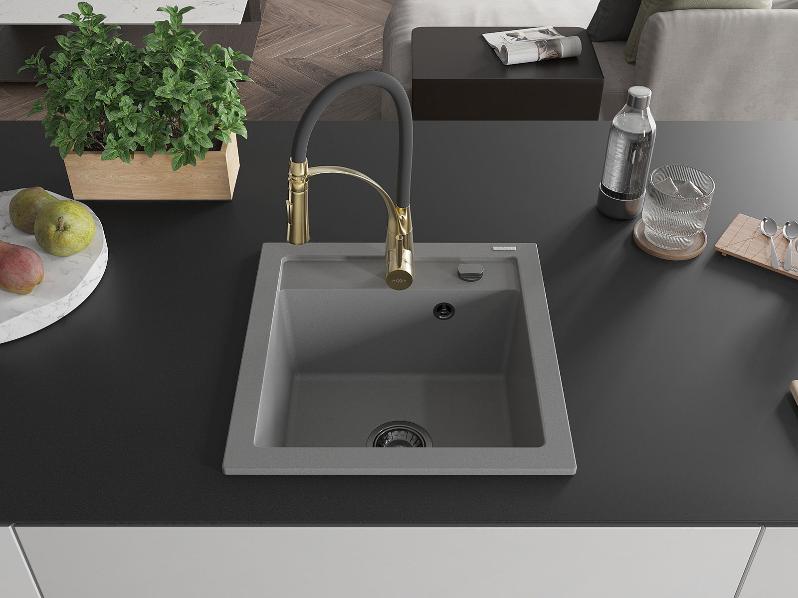 Mexen Vito chiuvetă din granit cu 1 compartiment și baterie de bucătărie Aster, gri - 6503-71-73450-57-B