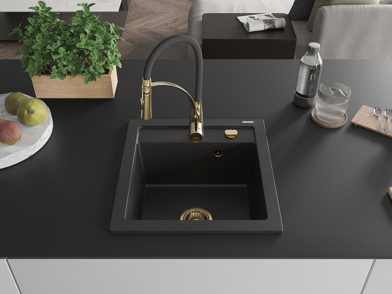 Mexen Vito chiuvetă de granit cu 1 compartiment cu baterie de bucătărie Aster, negru/argintiu metalic- 6503-73-73450-57-G