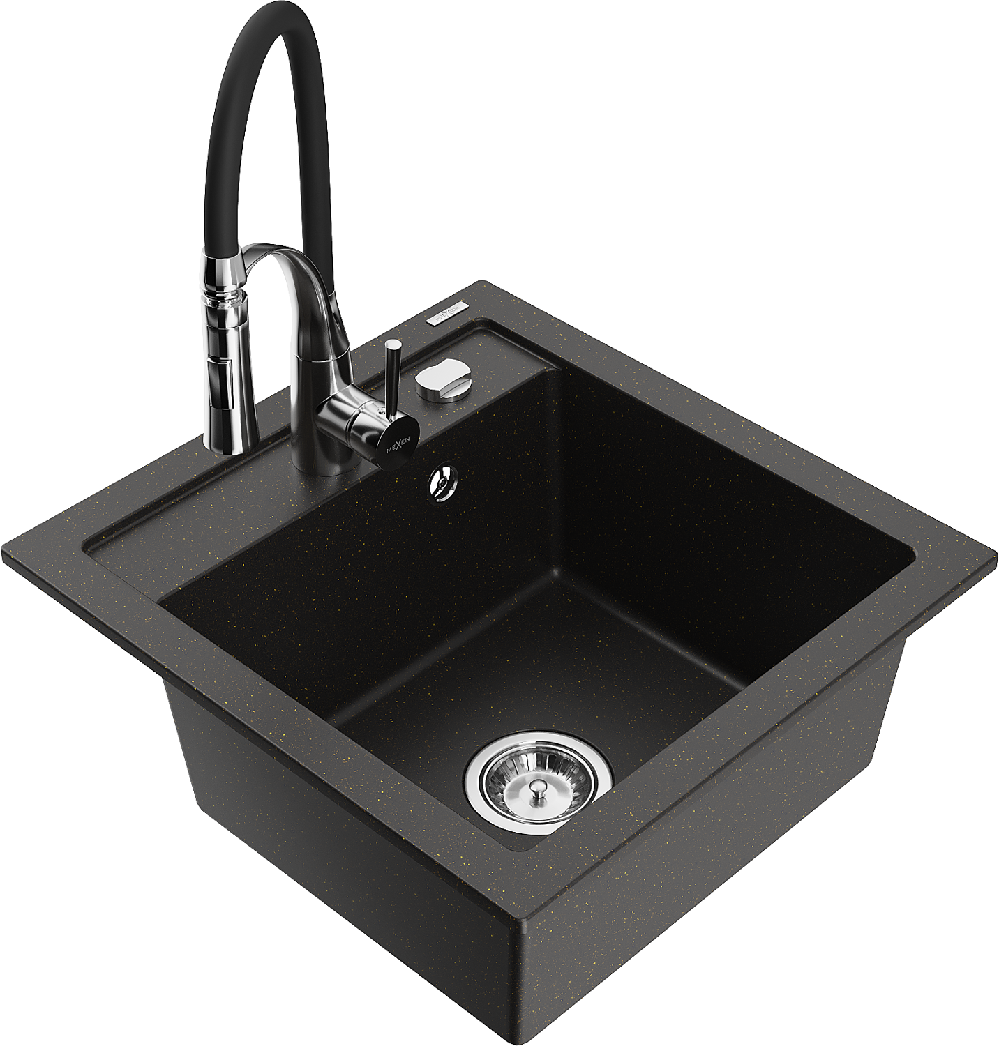 Mexen Vito chiuvetă de granit cu 1 compartiment cu robinet de bucătărie Aster, negru/auriu metalizat- 6503-75-73450-07