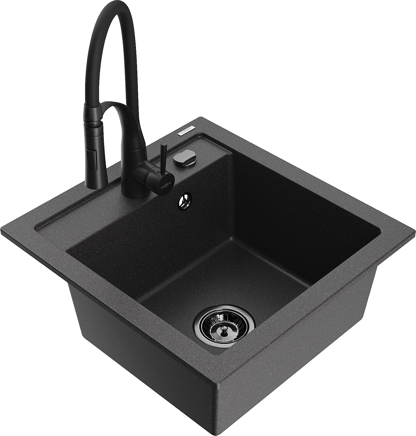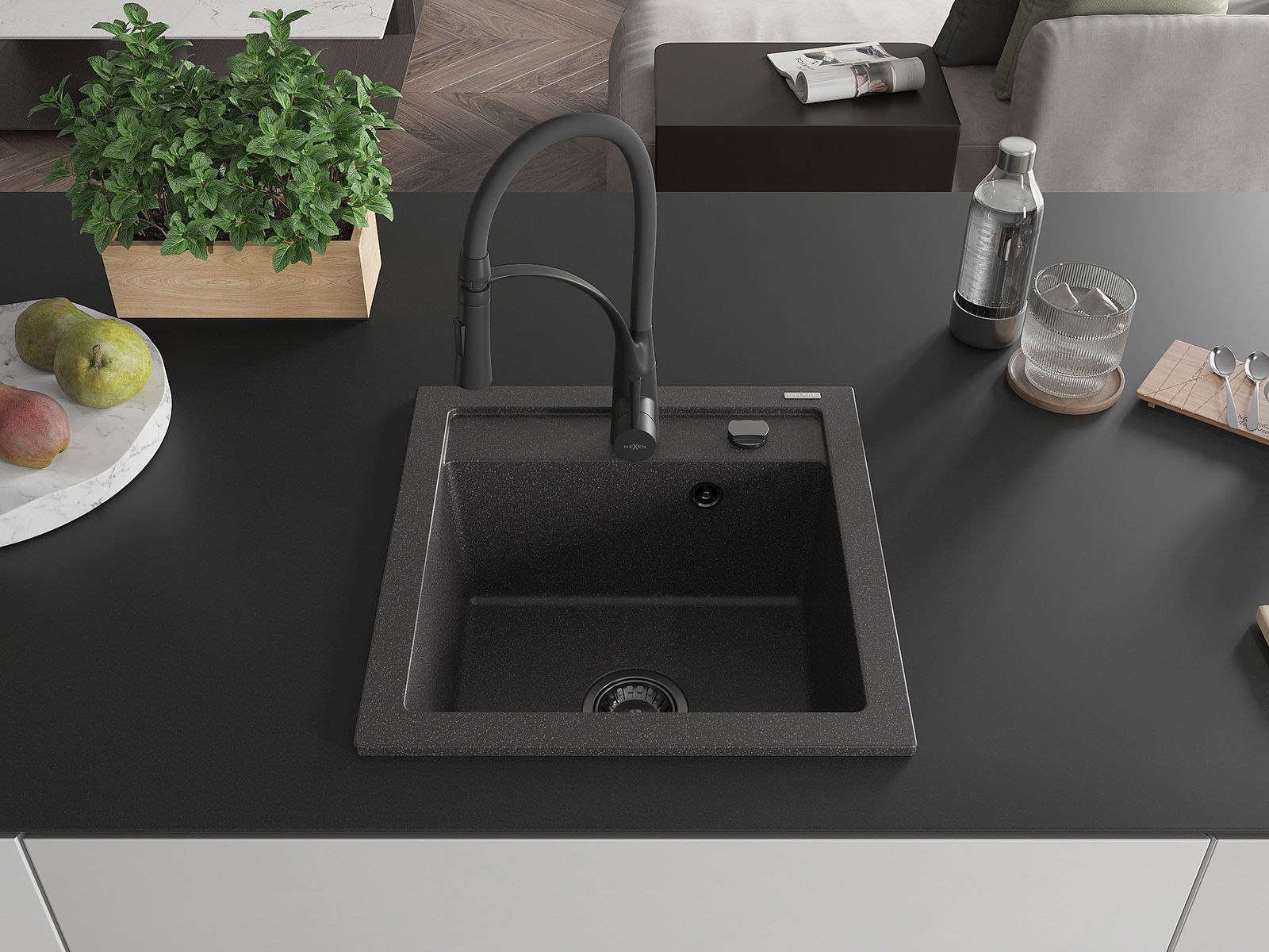 Mexen Vito chiuvetă din granit cu 1 compartiment și robinet de bucătărie Aster, negru cu picățele - 6503-76-73450-70-B