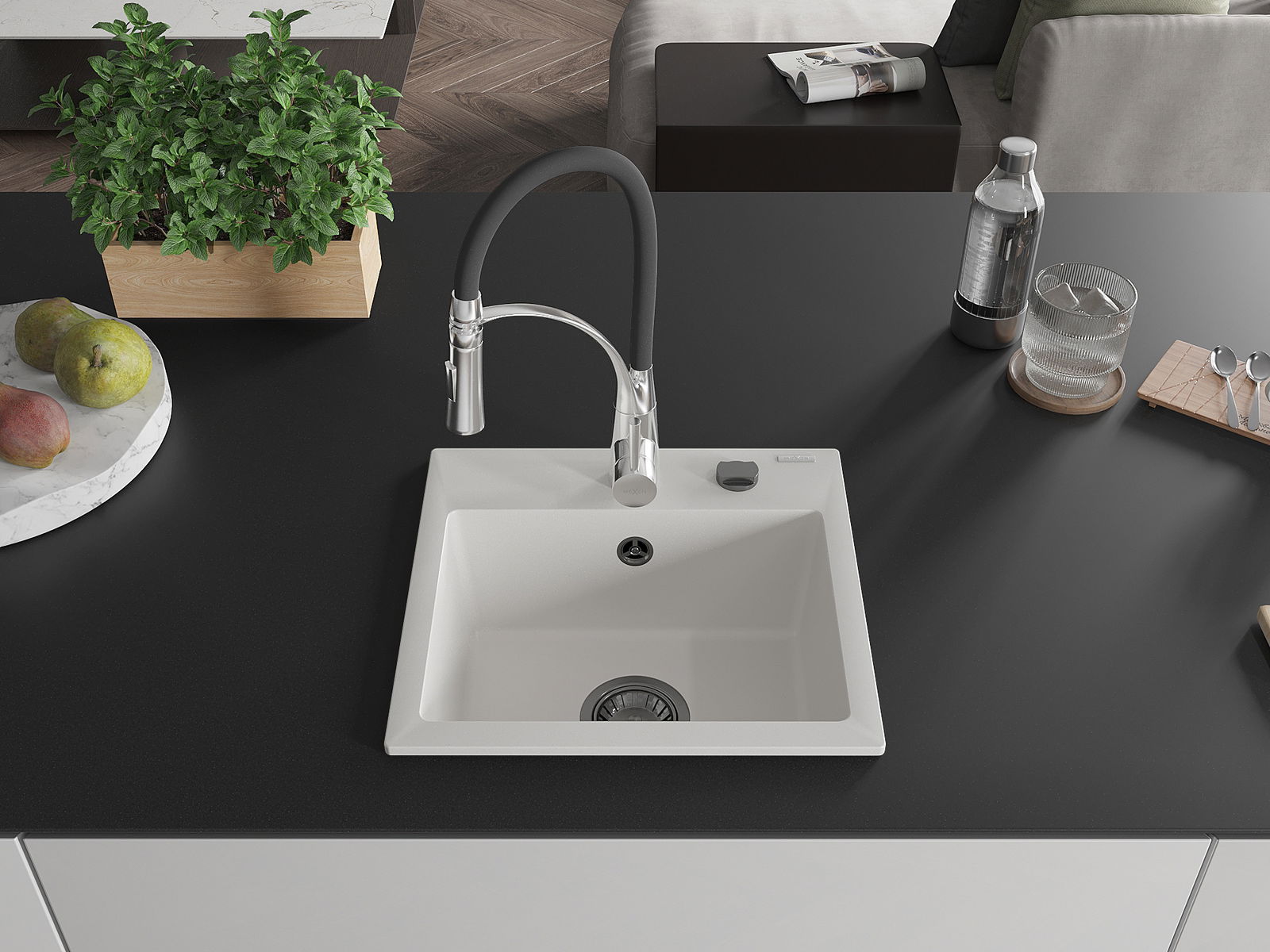 Suprafața chiuvetei este rezistentă la pete și decolorare, ceea ce o face ușor de întreținut și își păstrează culoarea pentru o perioadă lungă de utilizare. Un complet estetic și practic pentru orice bucătărie.