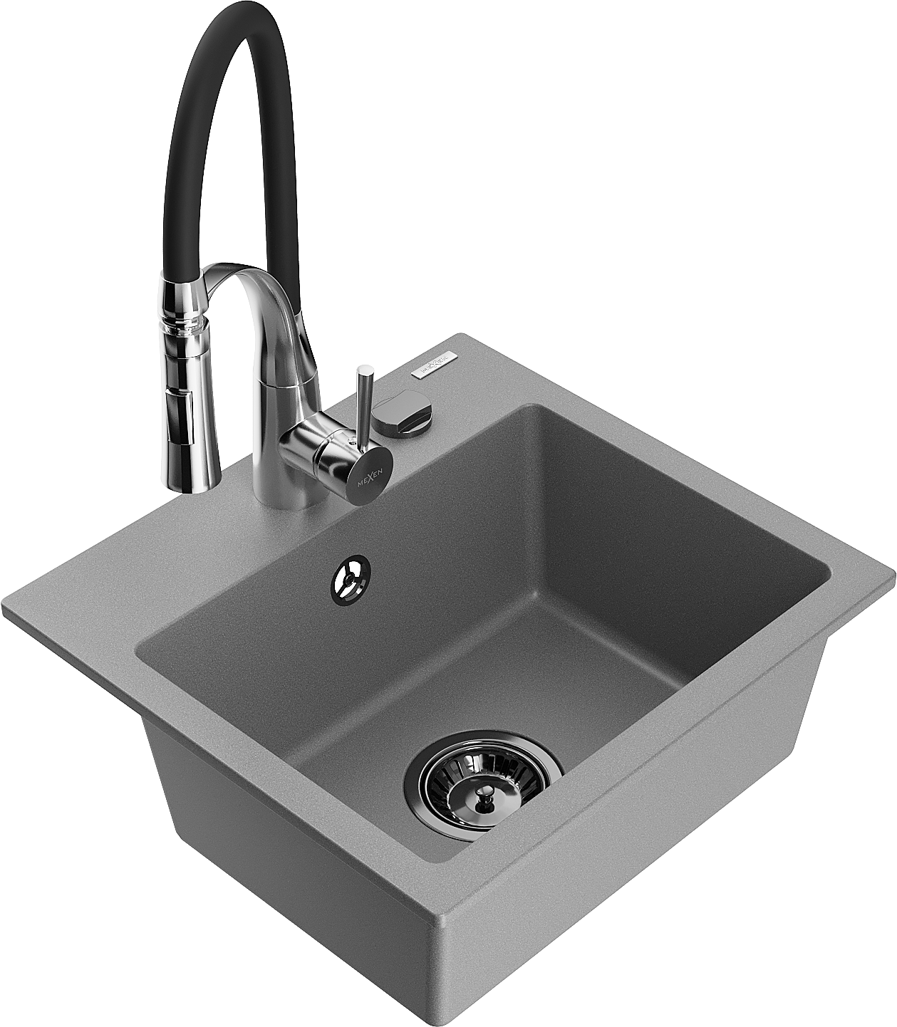 Mexen Milo chiuvetă de granit cu 1 compartiment cu baterie de bucătărie Aster, gri - 6505-71-73450-07-B