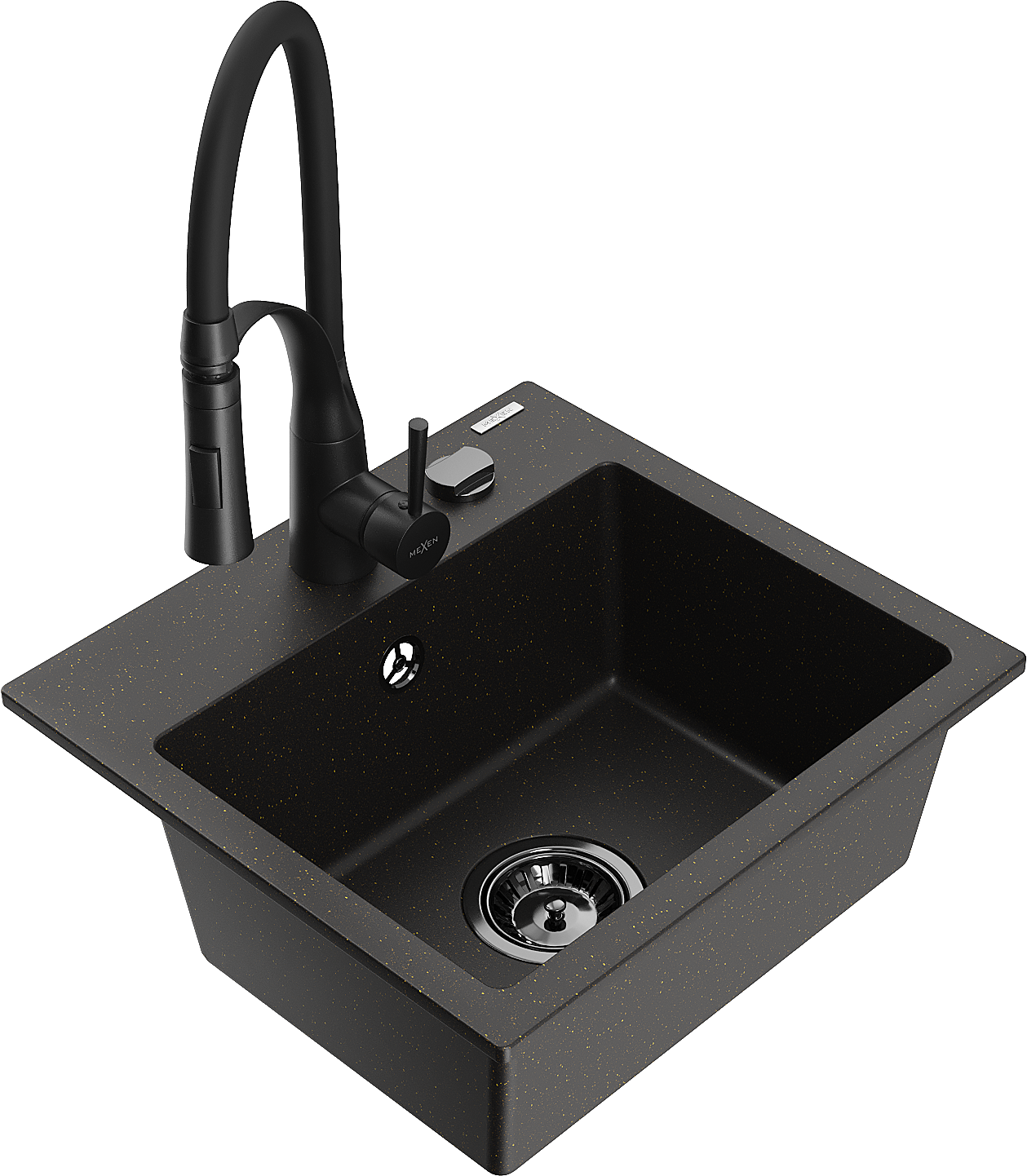 Mexen Milo chiuvetă din granit cu 1 compartiment și baterie de bucătărie Aster, negru/auriu metalic - 6505-75-73450-70-B