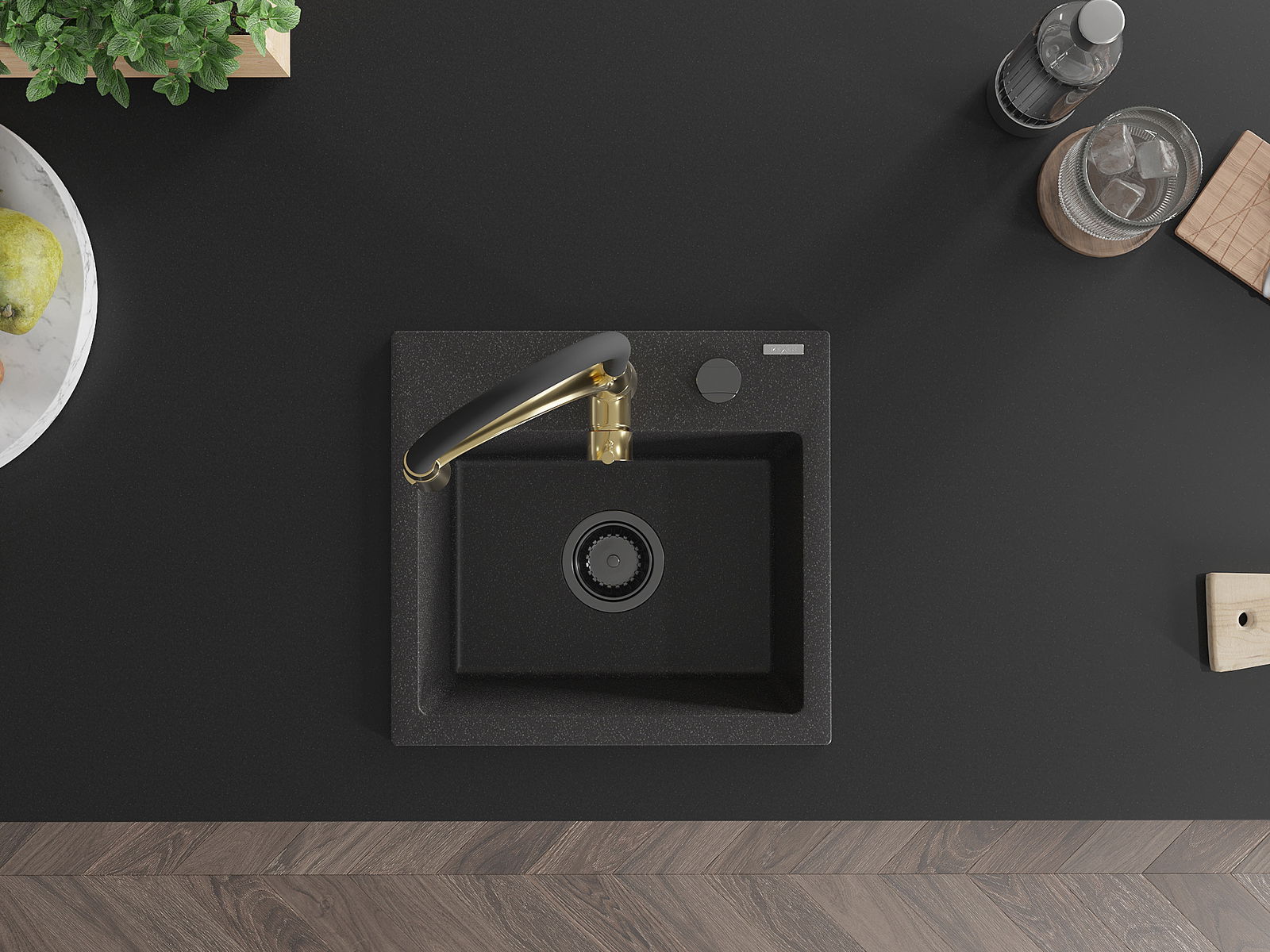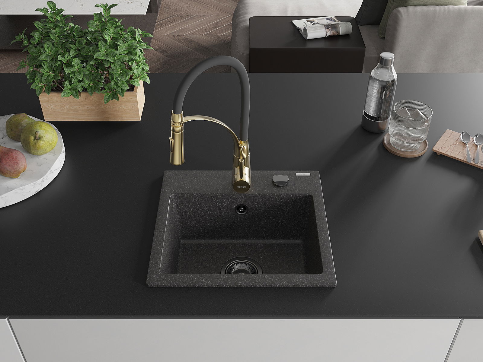 Mexen Milo chiuvetă de granit cu 1 compartiment și baterie de bucătărie Aster, negru punctat - 6505-76-73450-57-B