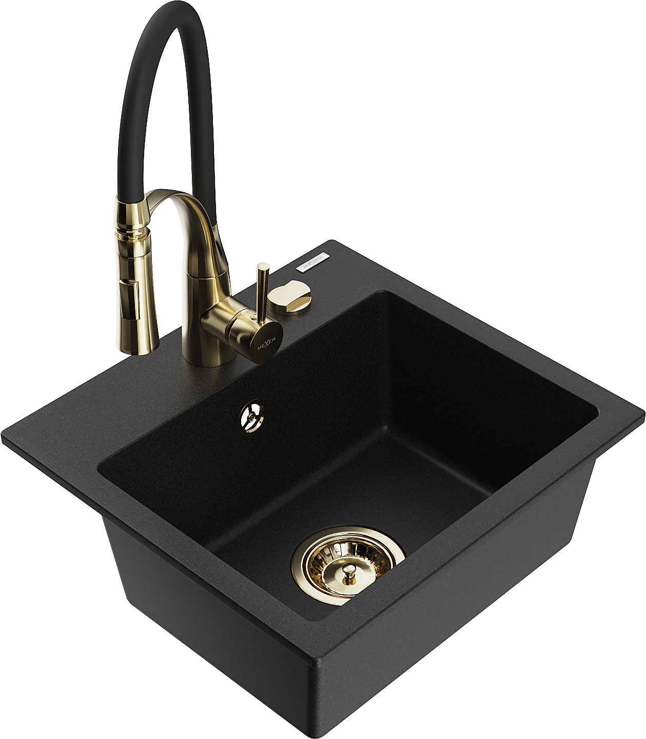 Mexen Milo chiuvetă de granit cu 1 compartiment și baterie de bucătărie Aster, negru - 6505-77-73450-57-G